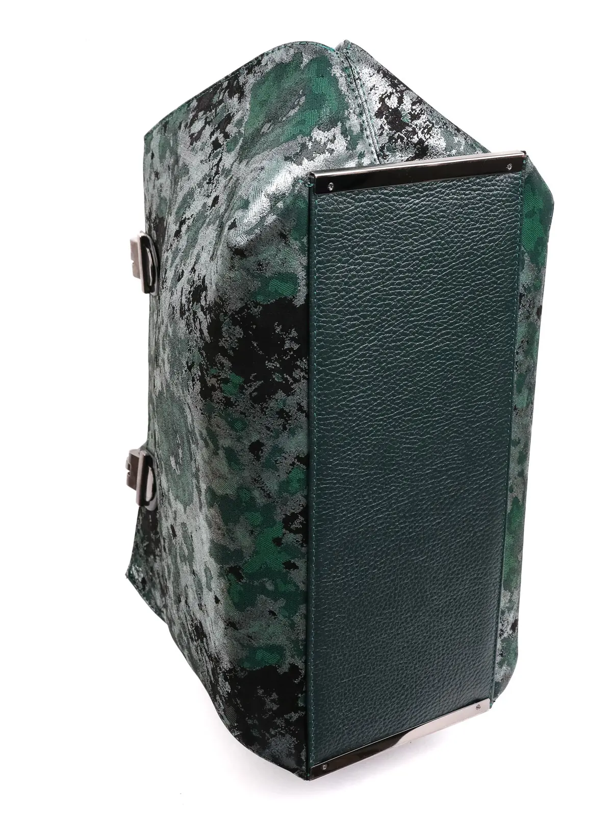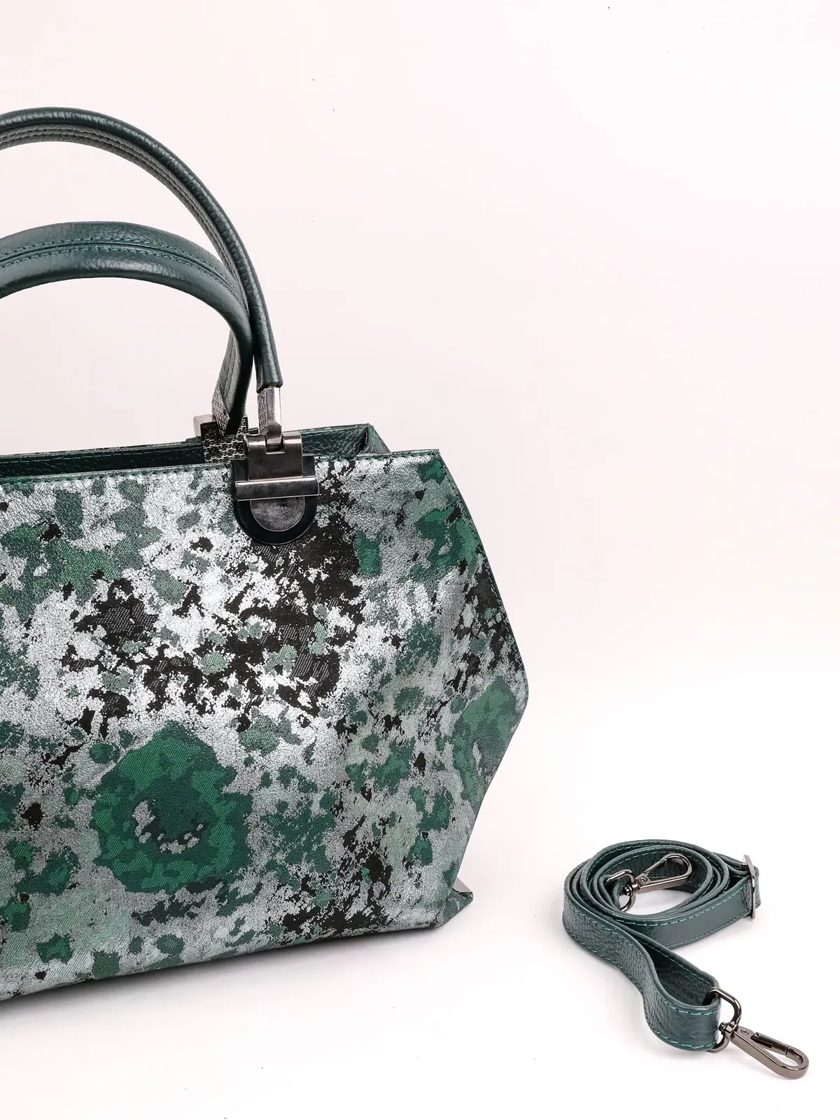 Серебристо-Зеленая Женская Сумка из Натуральной Кожи с Абстрактным Узором