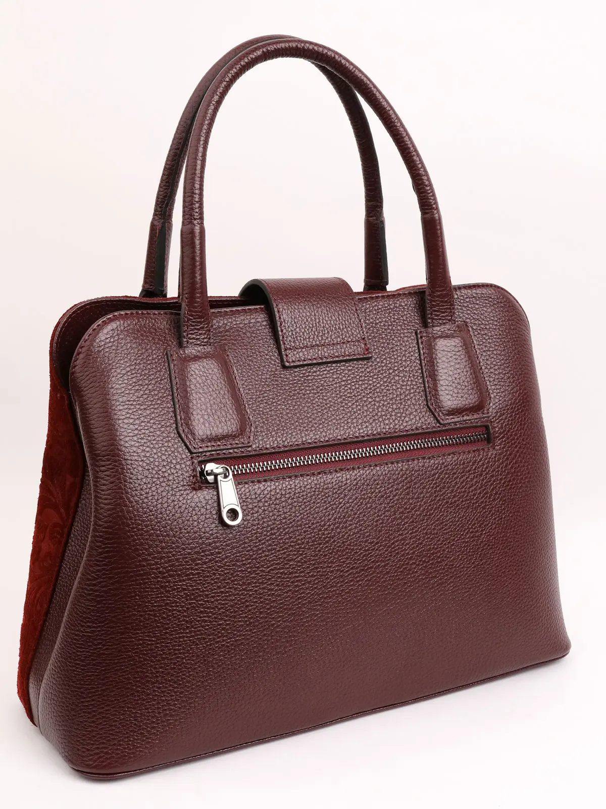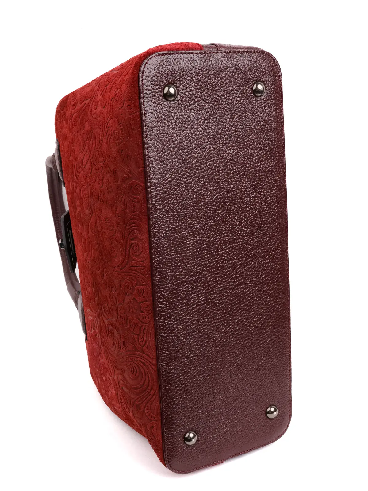 Женская сумка из натуральной кожи с узорными замшевыми деталями - Бордовая