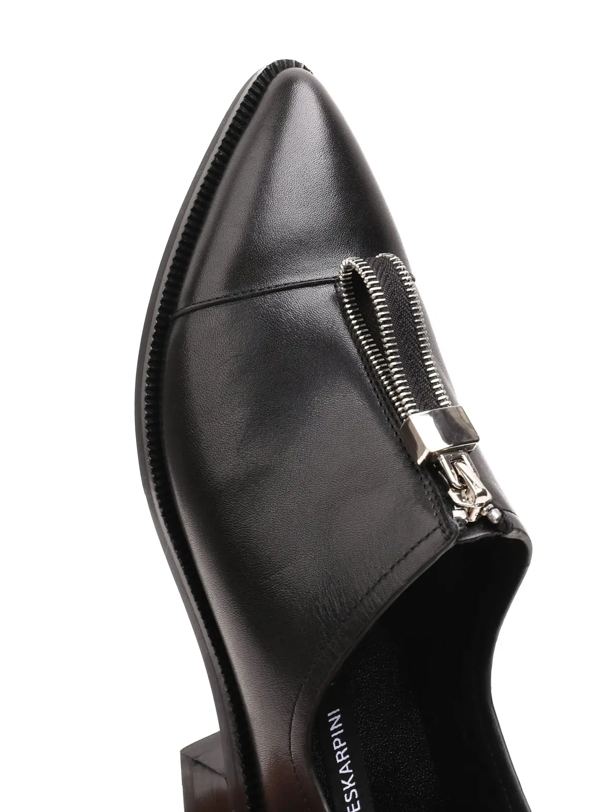 Eskarpini Qara Təbii Dəri Fermuar Detallı Sivri Burun Qadın Gündəlik Ayaqqabı