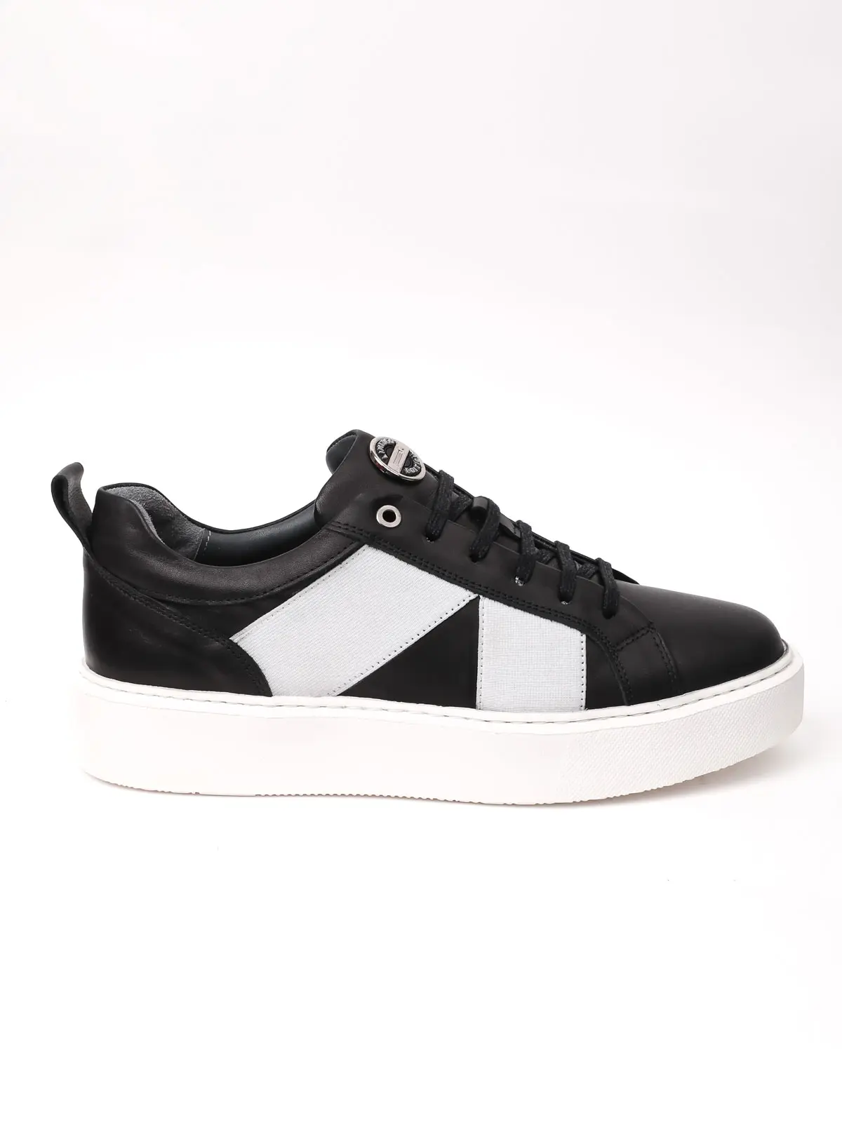 Kişi Həqiqi Dəri Gündəlik Sneaker – Kontrast Ağ Zolaqlı Model