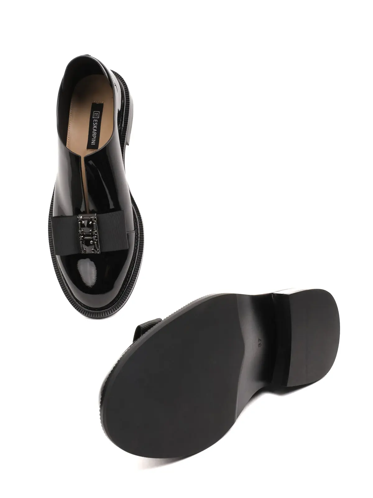 Qadın Həqiqi Dəri Laklı Loafer – Parlaq Daşlı Bantlı Model