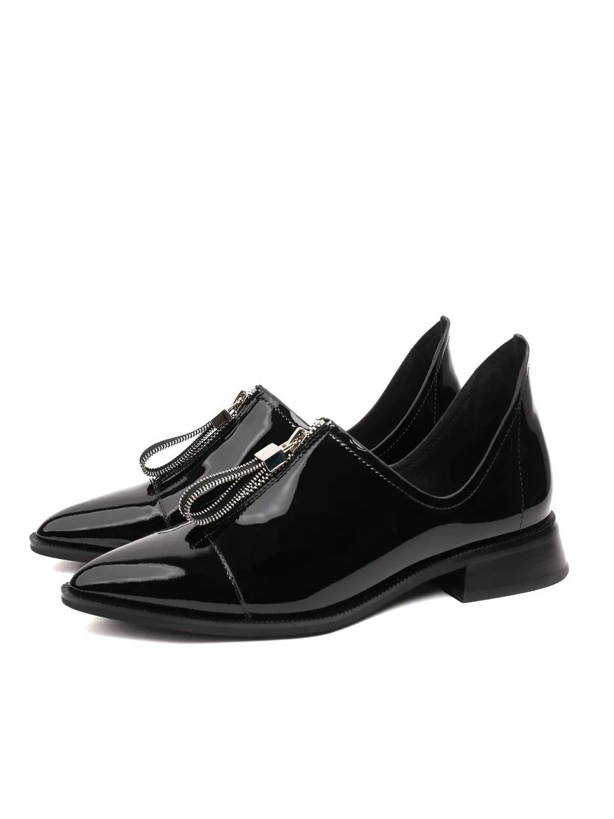 Qara Laklı Təbii Dəri – Önü Fermuarlı Sivri Burun Qadın Ayaqqabısı