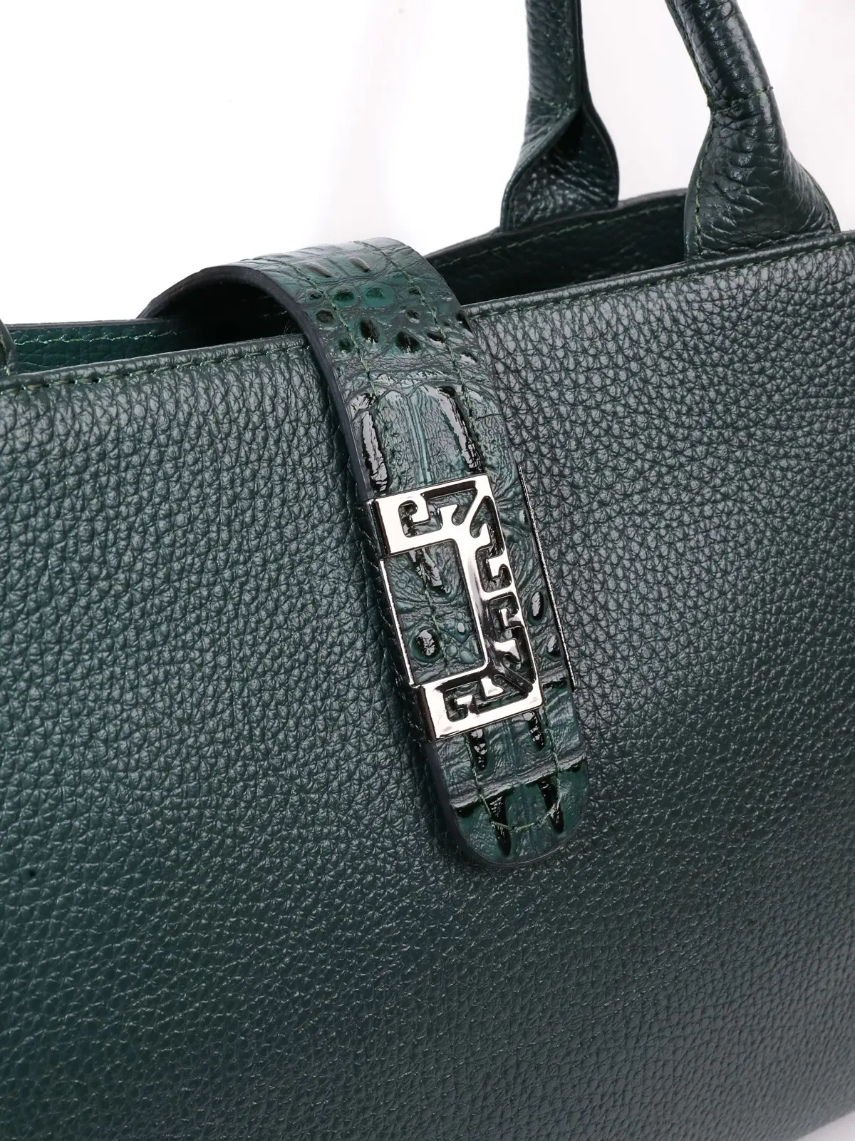Tünd Yaşıl Kroko Detallı Təbii Dəri Qadın Çantası