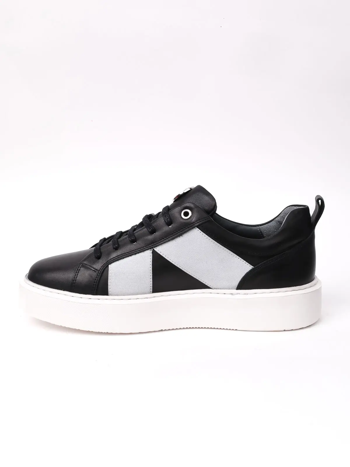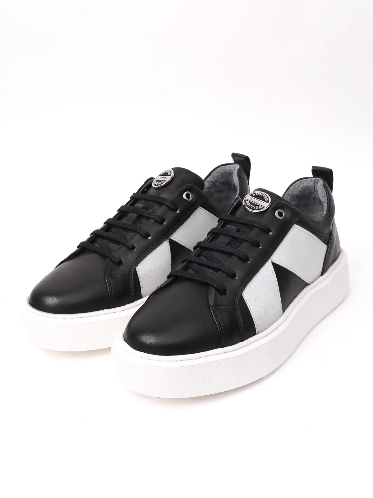 The shoe's minimalist black color perfectly combines with the bold, contrasting white stripe on the side, creating a dynamic look. This elegant detail emphasizes your character without compromising simplicity.