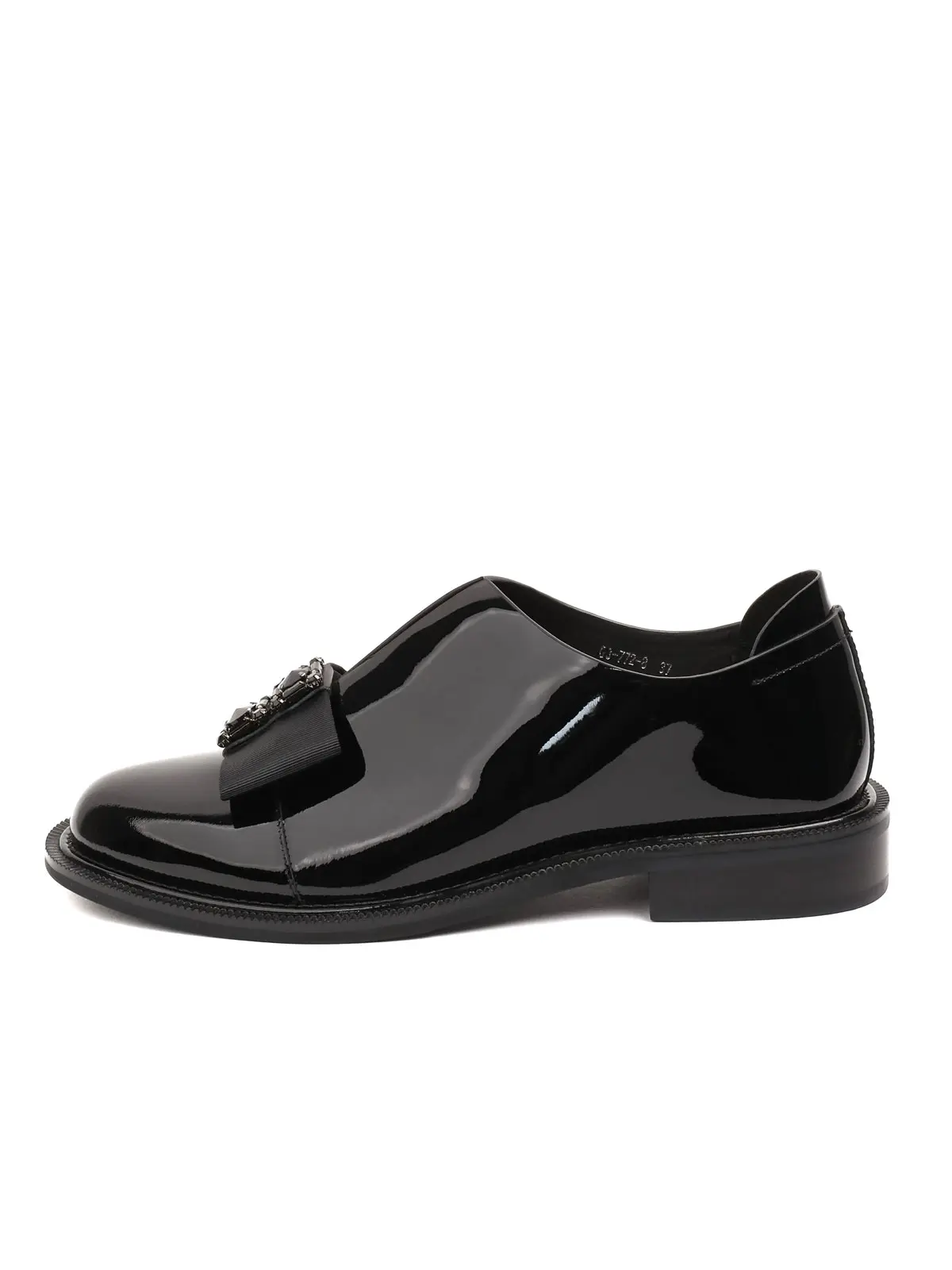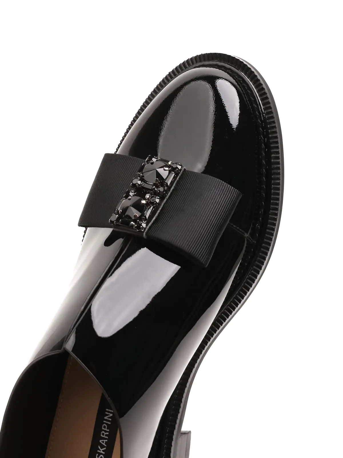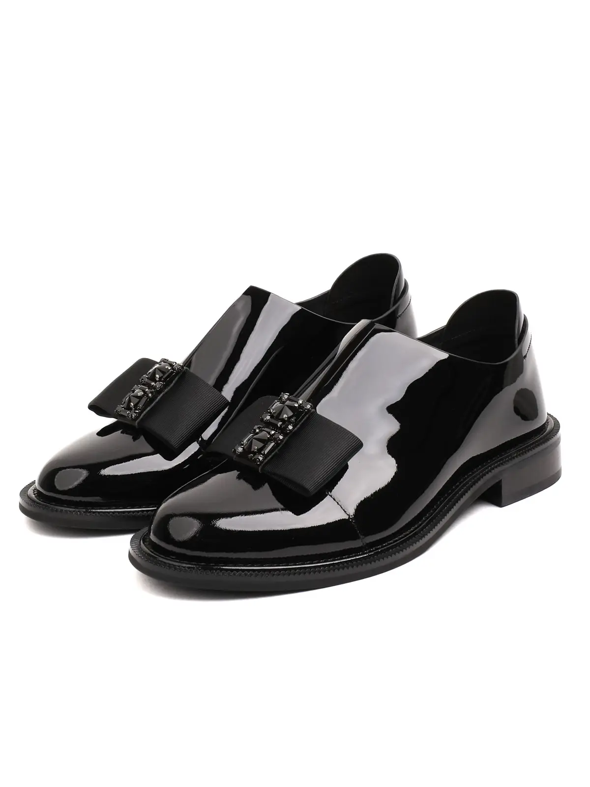 Women's Genuine Patent Leather Loafers – Model with Shiny Jeweled Bow