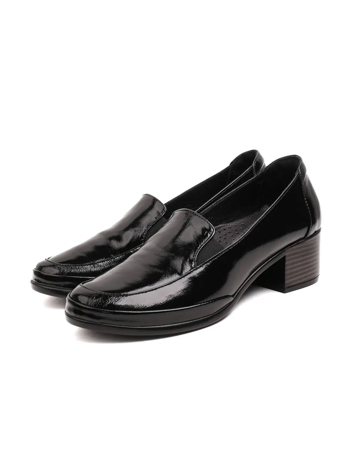 Eskarpini Black Genuine Patent Leather Block Heel Women's Shoes