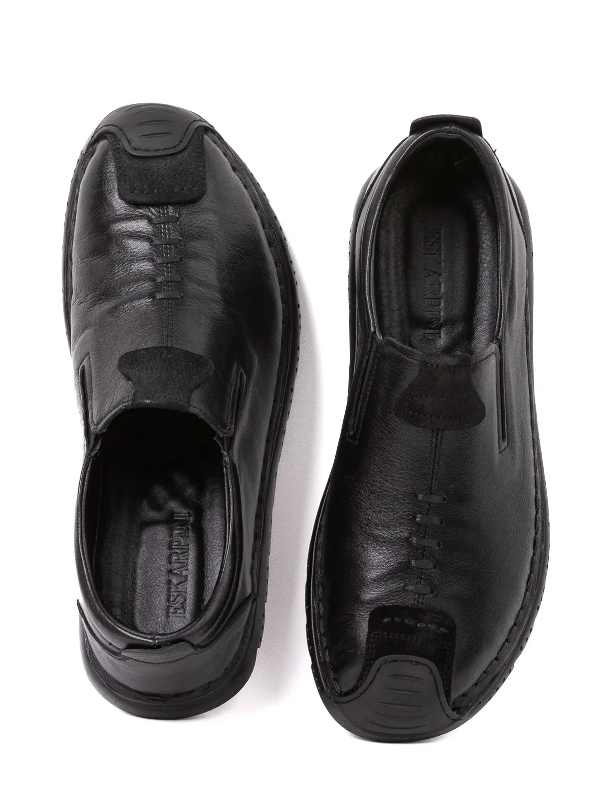 Designed especially for men who do not want to compromise on either comfort or elegance in the rush of daily life, these black leather moccasins will become an indispensable part of your wardrobe. This model, which combines modern design with classic comfort, makes you feel the difference with every step.