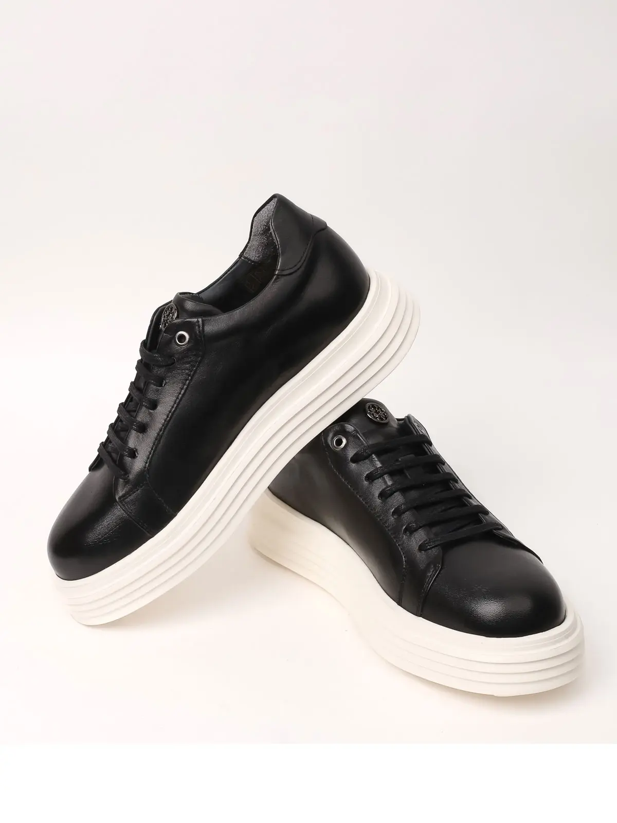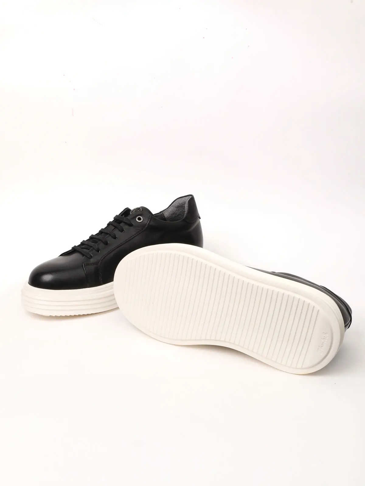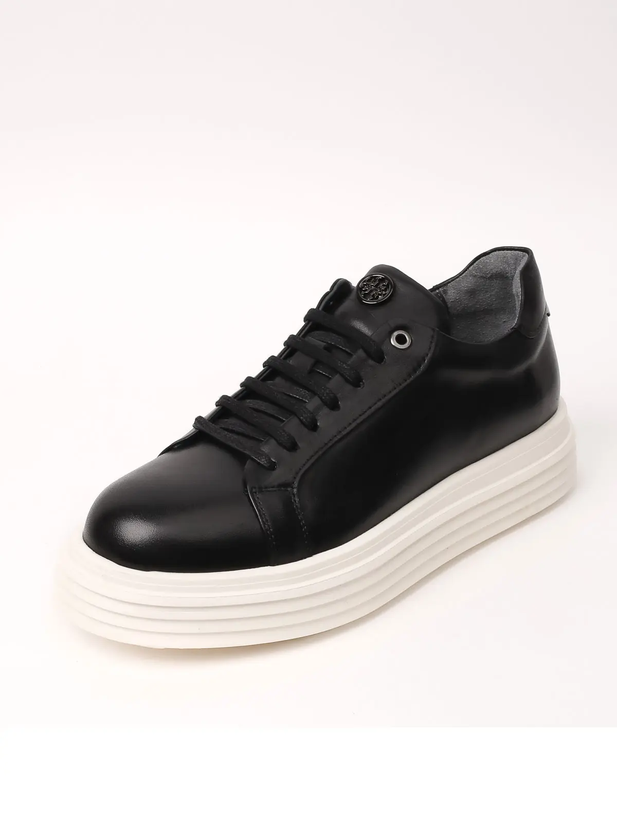 Experience both comfort and modern design together with these black natural leather sneakers from the Eskarpini collection. This model, which combines a classic look with a thick platform sole, is a candidate to become an indispensable part of any wardrobe.
