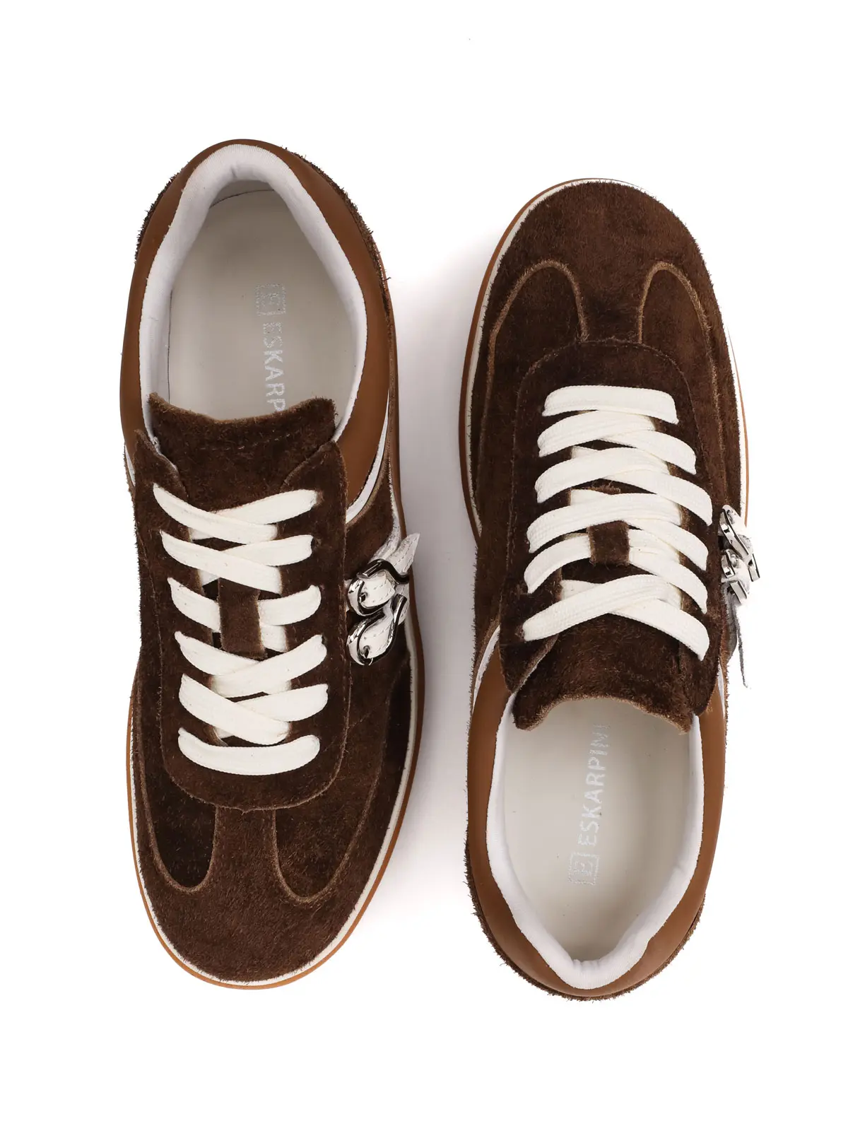 One of the most beautiful pieces of the Eskarpini collection, this sporty shoe is specially designed for women who value both comfort and chicness in their daily lives. The nobility of the brown color and the perfect contrast created by the white details allow you to complete any outfit combination with this model.