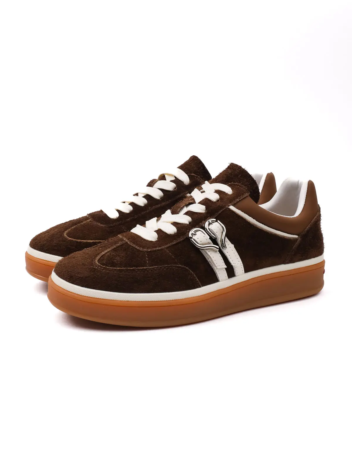 Natural Leather Brown - Women's Sneakers with Heart Buckle and Platform Sole