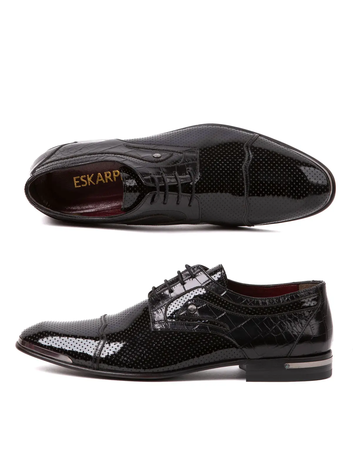 Presented with Eskarpini quality and elegance, this special design is a perfect choice to complete your style in both daily business life and special events. Made from 100% Natural Leather, these shoes stand out with their shiny appearance and eye-catching details.