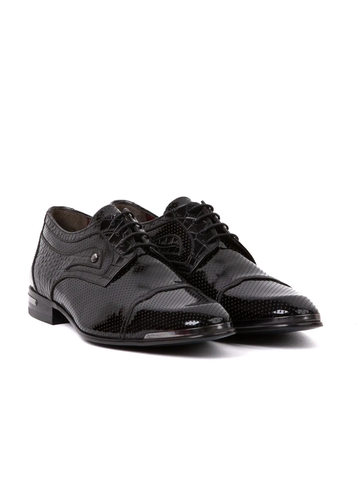 Crocodile Pattern and Laser Cut Natural Leather Patent Classic Men's Shoes