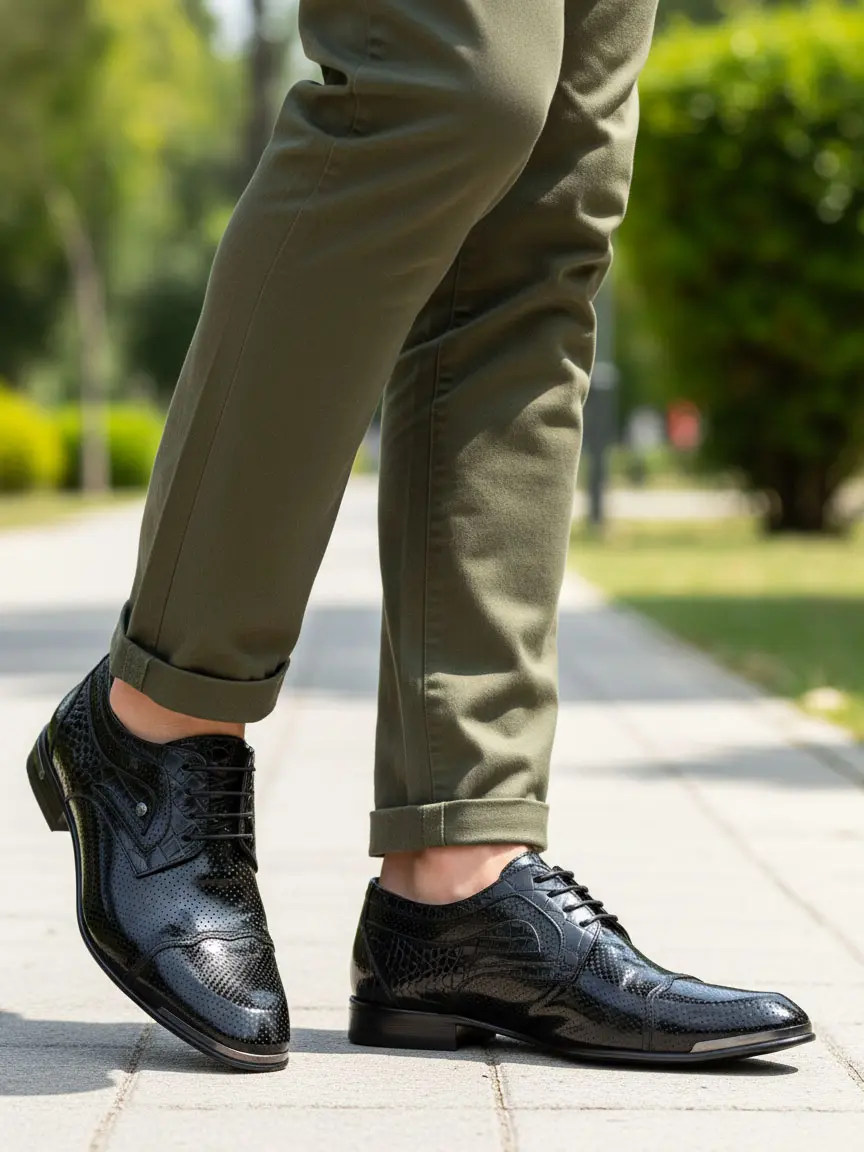 Fine laser (dotted) processing on the front and embossed crocodile skin (croc) patterns on the sides add a modern and rich touch to the model. The metal detail on the toe adds an aesthetic touch while increasing the durability of the shoe. An ideal choice for gentlemen seeking comfort and chicness together.