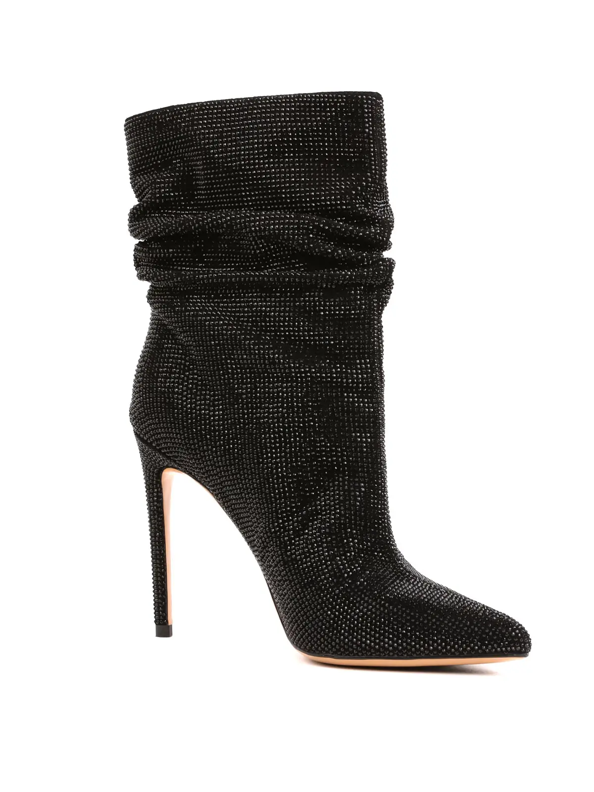 Eskarpini'nin en yeni koleksiyonundan olan bu muhteşem yarım çizmeler ile tüm dikkatleri üzerinize çekin. Yüksek kaliteli doğal nubuk deri üzerine özel ustalıkla işlenmiş binlerce parlak siyah taş, bu modele benzersiz bir cazibe kazandırıyor.