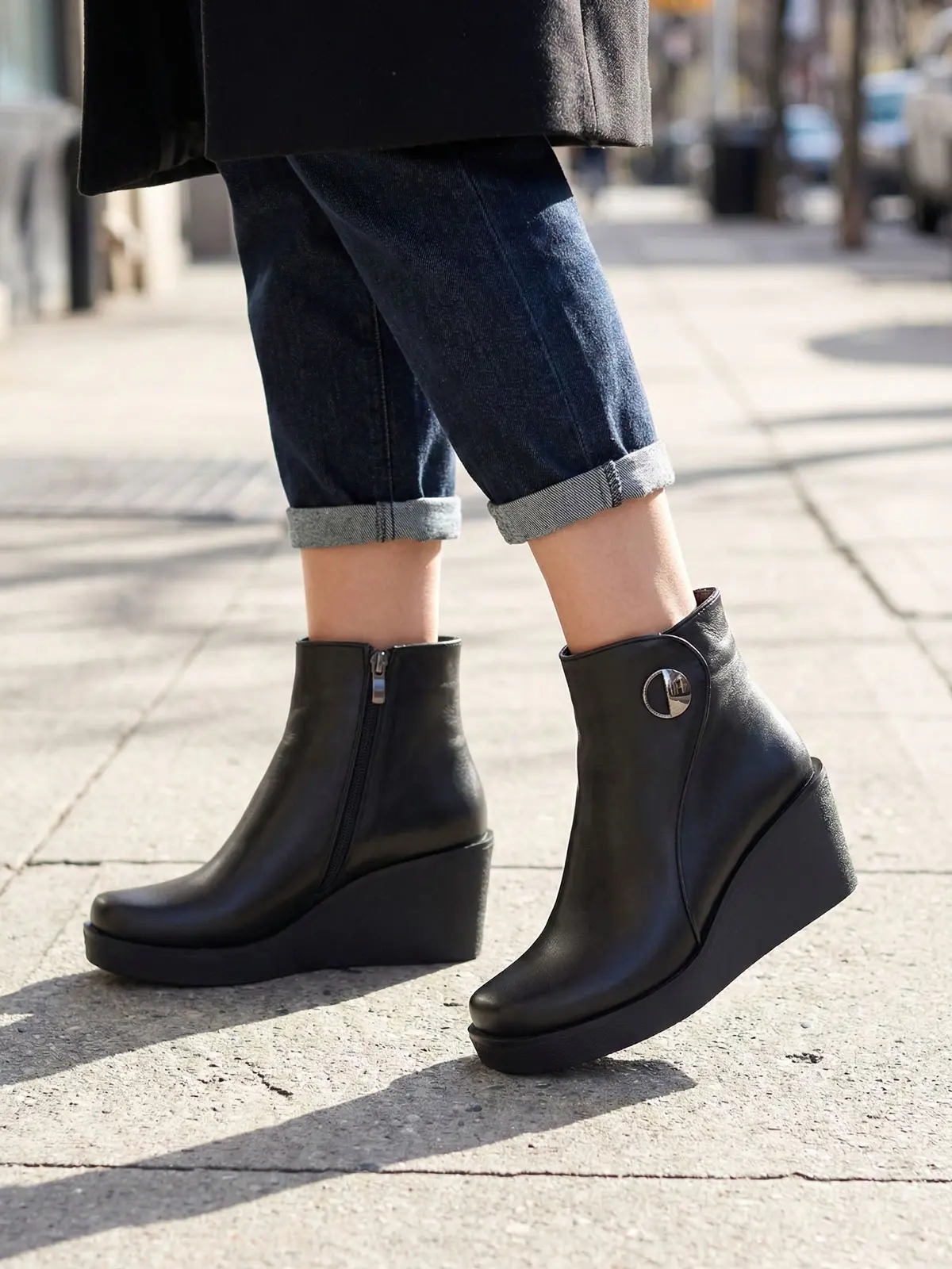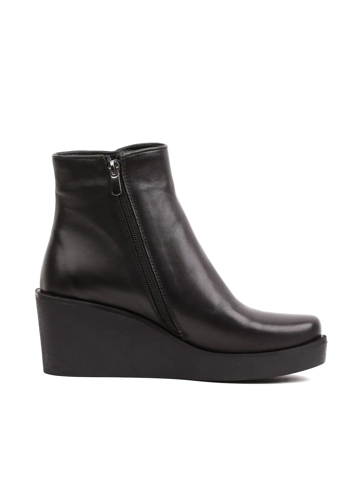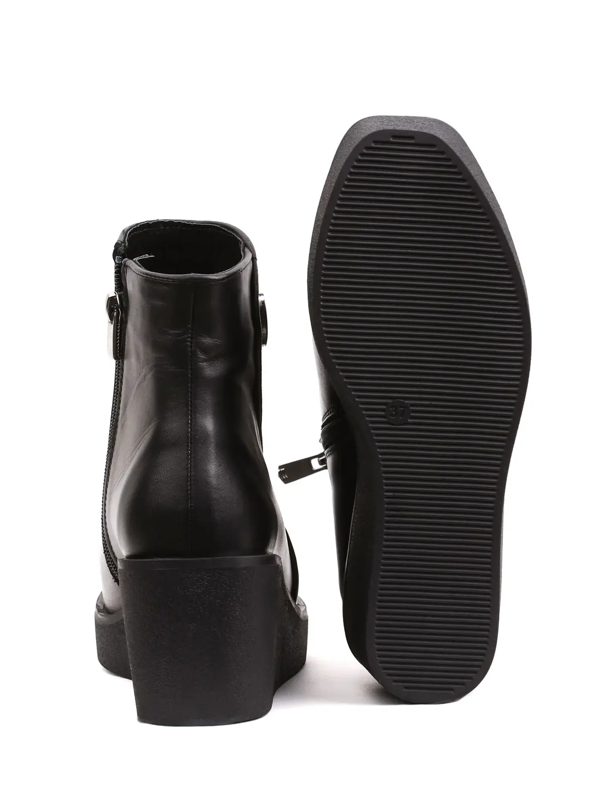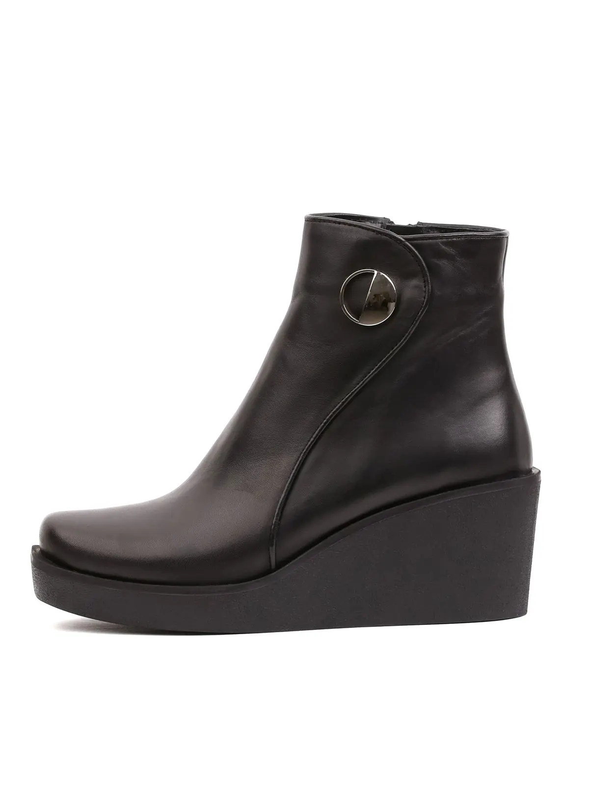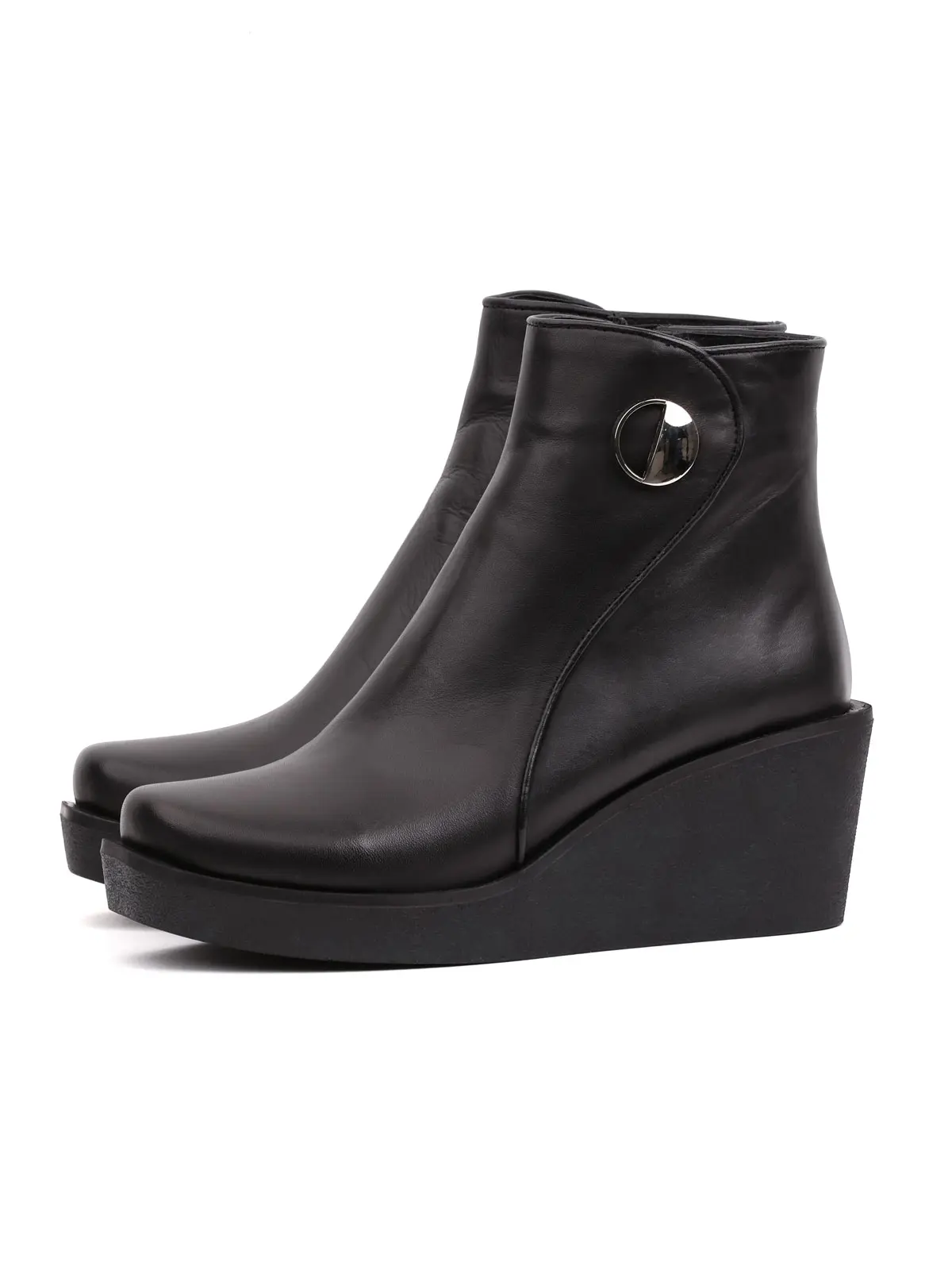 Eskarpini Hakiki Deri Siyah Dolgu Topuk Kadın Botu – Metal Detaylı Elegance