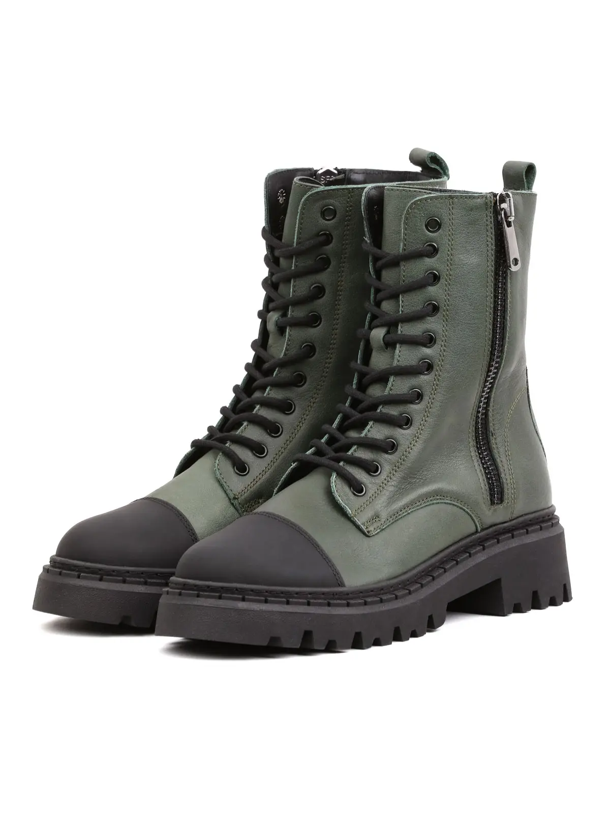 Уникальный дизайн: Идеальное сочетание оливково-зеленого цвета с черными деталями (носок и подошва).