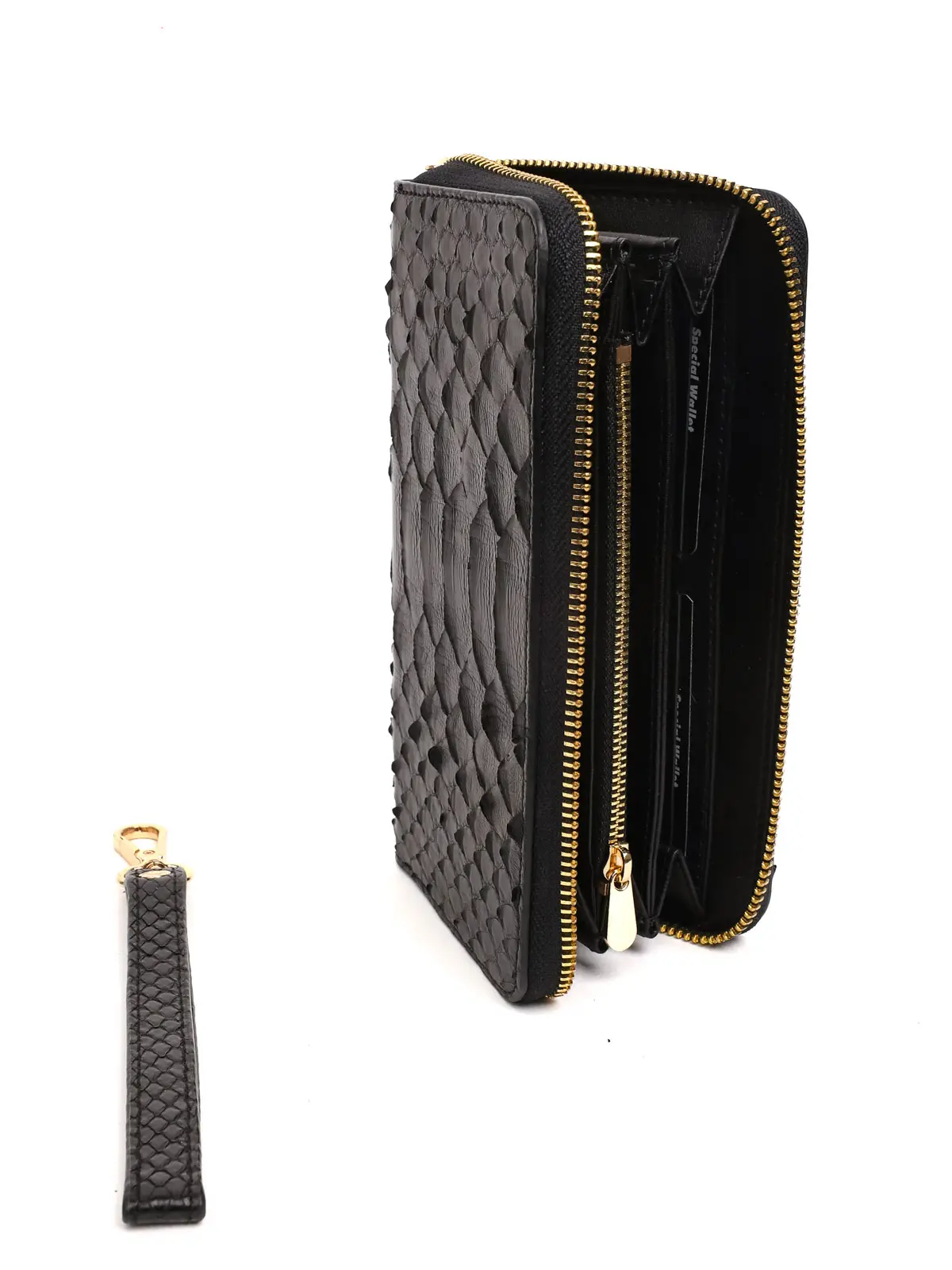 Elegant Details: Rust-proof gold-colored zipper and metal accessories that add a luxurious look to the wallet.
