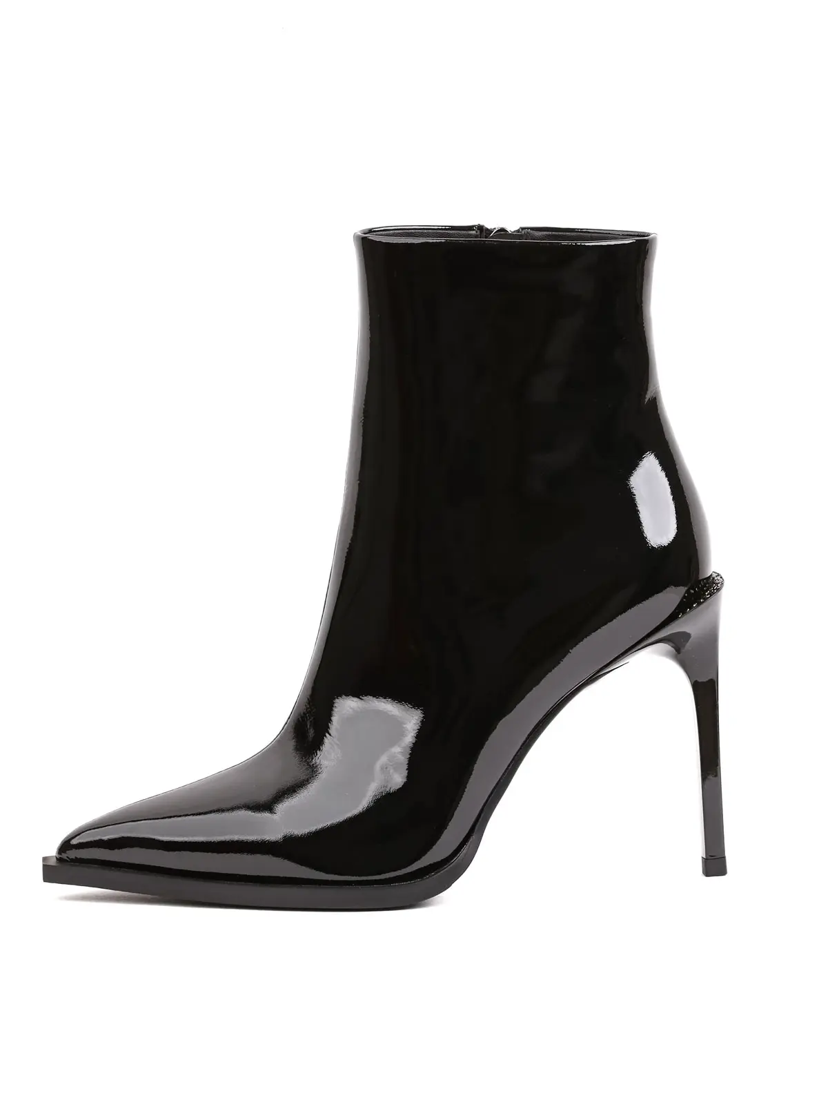 Black Patent Genuine Leather 10 cm Stiletto Booties
