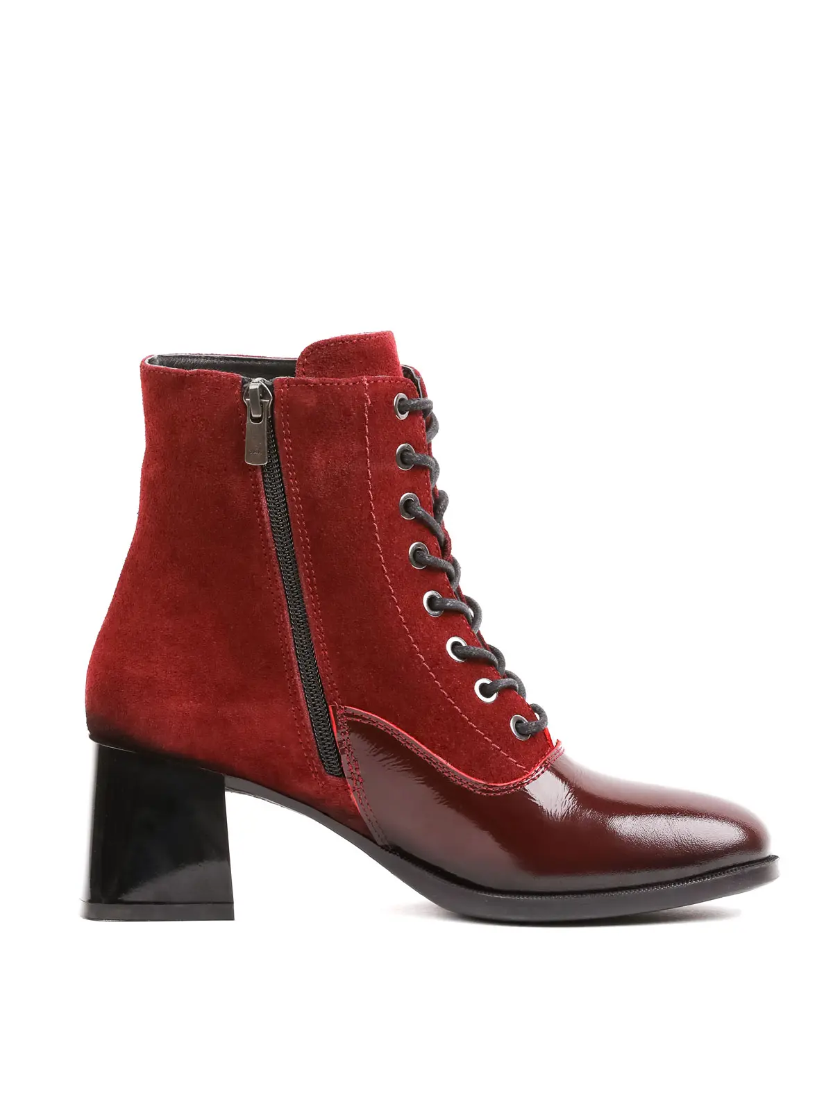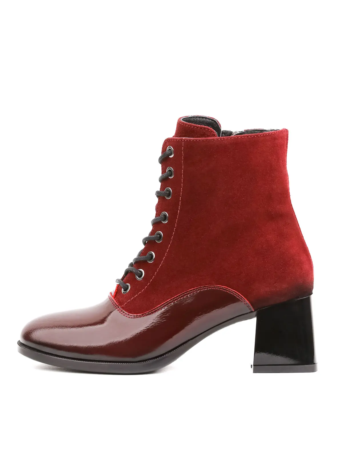 Qırmızı Süet və Patent Dəri Qarışımlı Hündürdaban Qadın Botu