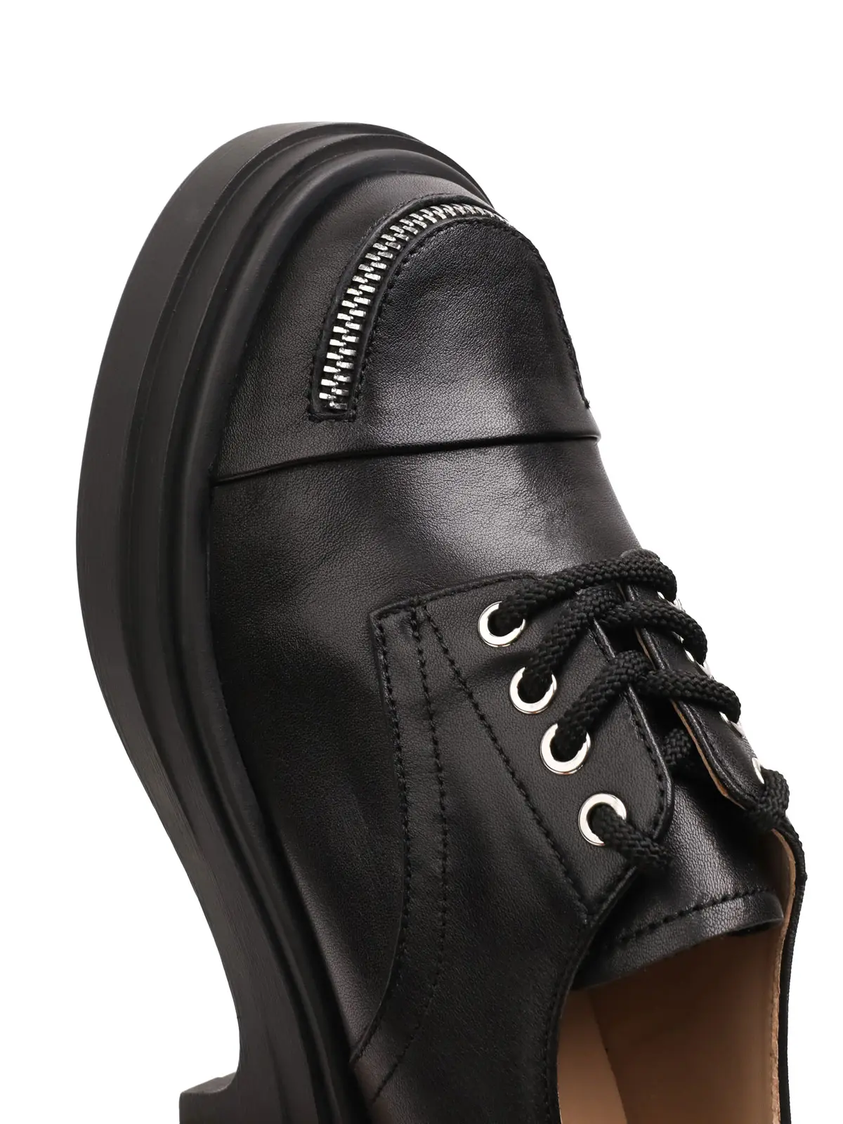 Təbii Dəri Önü Fermuar Detallı Qalın Dabanlı Qadın Ayaqqabısı