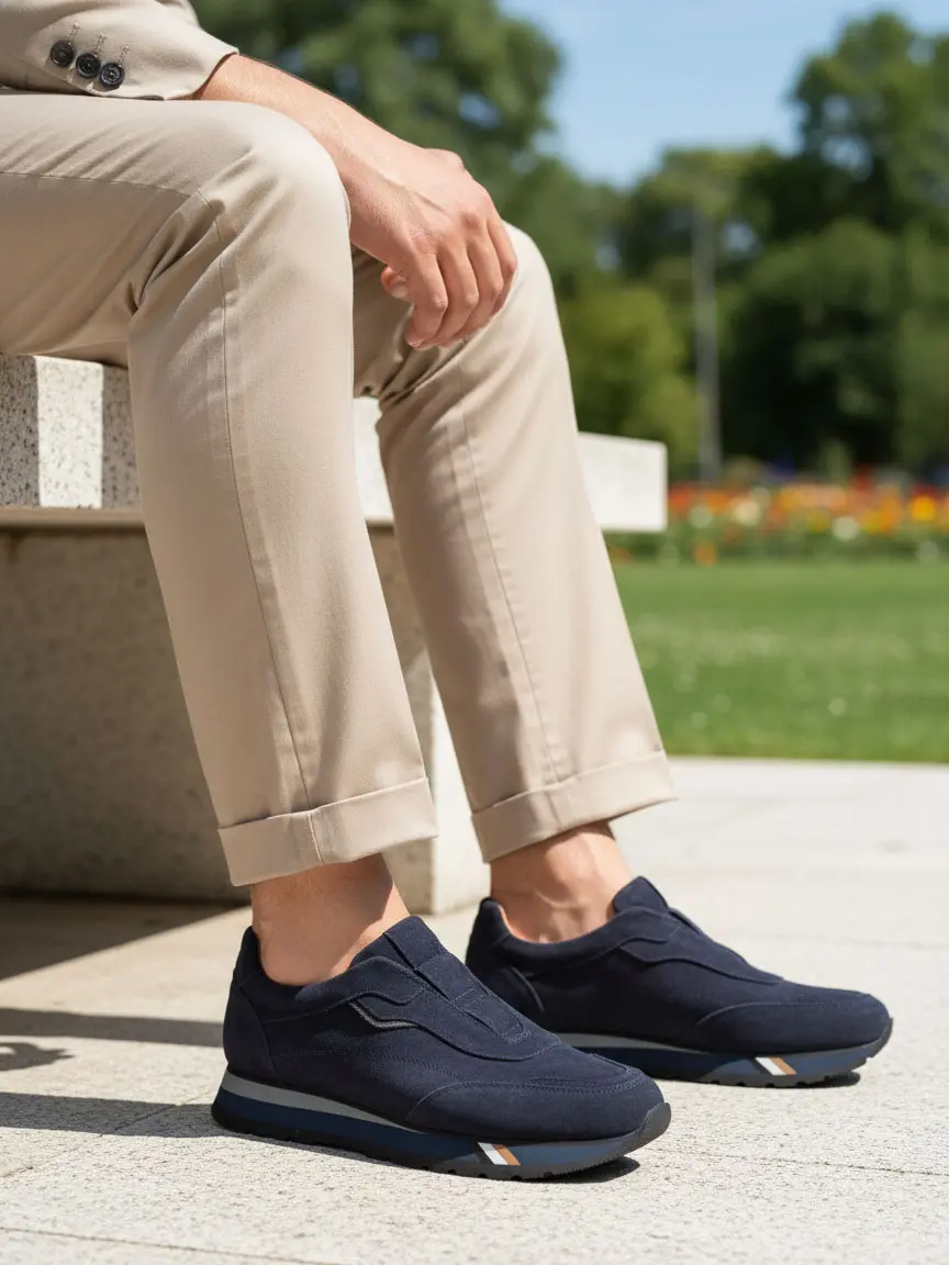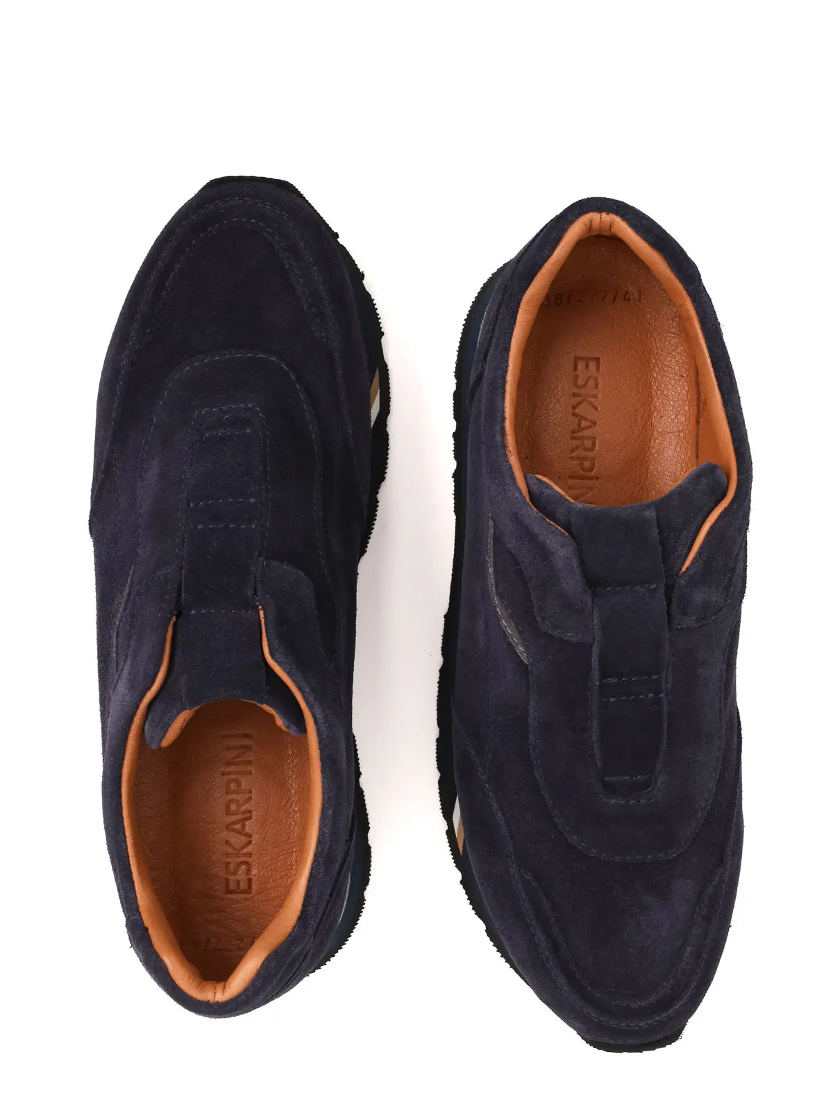 Eskarpini-nin xüsusi kolleksiyasından olan bu tünd göy rəngli slip-on keta ilə gündəlik tərzinizə müasir və zərif bir toxunuş əlavə edin. Yüksək keyfiyyətli 100% təbii zamşa (dəri) materialdan istehsal olunan bu model, həm göz oxşayan görünüşü, həm də üstün rahatlığı ilə seçilir.