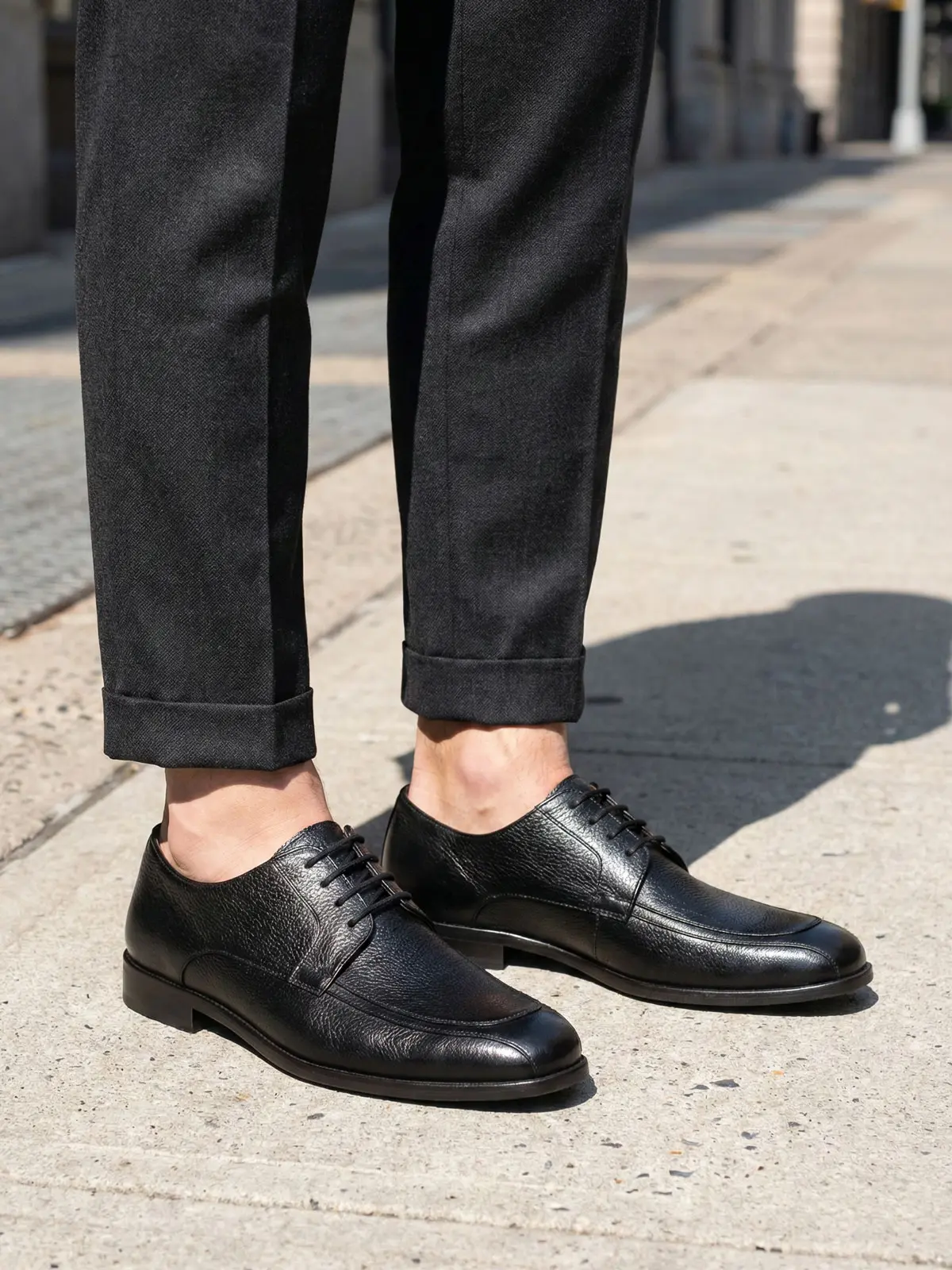The special stitching details (moc-toe) on the shoe and the natural texture of the leather give it both a serious and modern vibe. It fits perfectly with suits as well as "smart-casual" (chinos and shirt) styles.