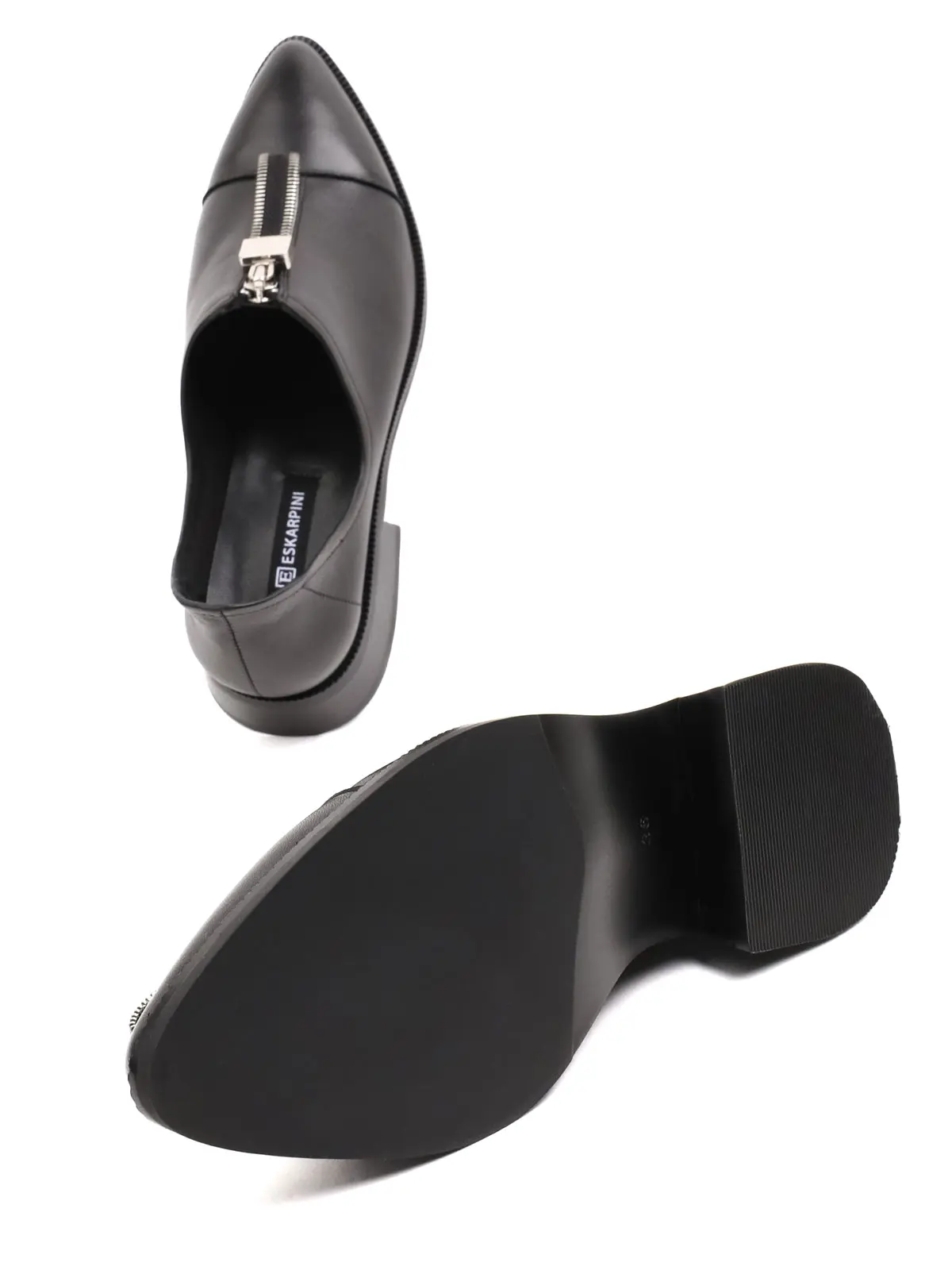 Eskarpini Qara Təbii Dəri Fermuar Detallı Sivri Burun Qadın Gündəlik Ayaqqabı