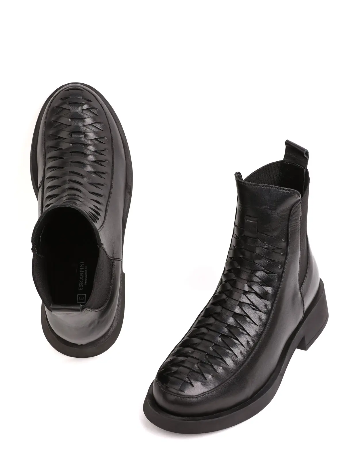 Həqiqi Dəri Hörmə Naxışlı Qara Çelsi Bot