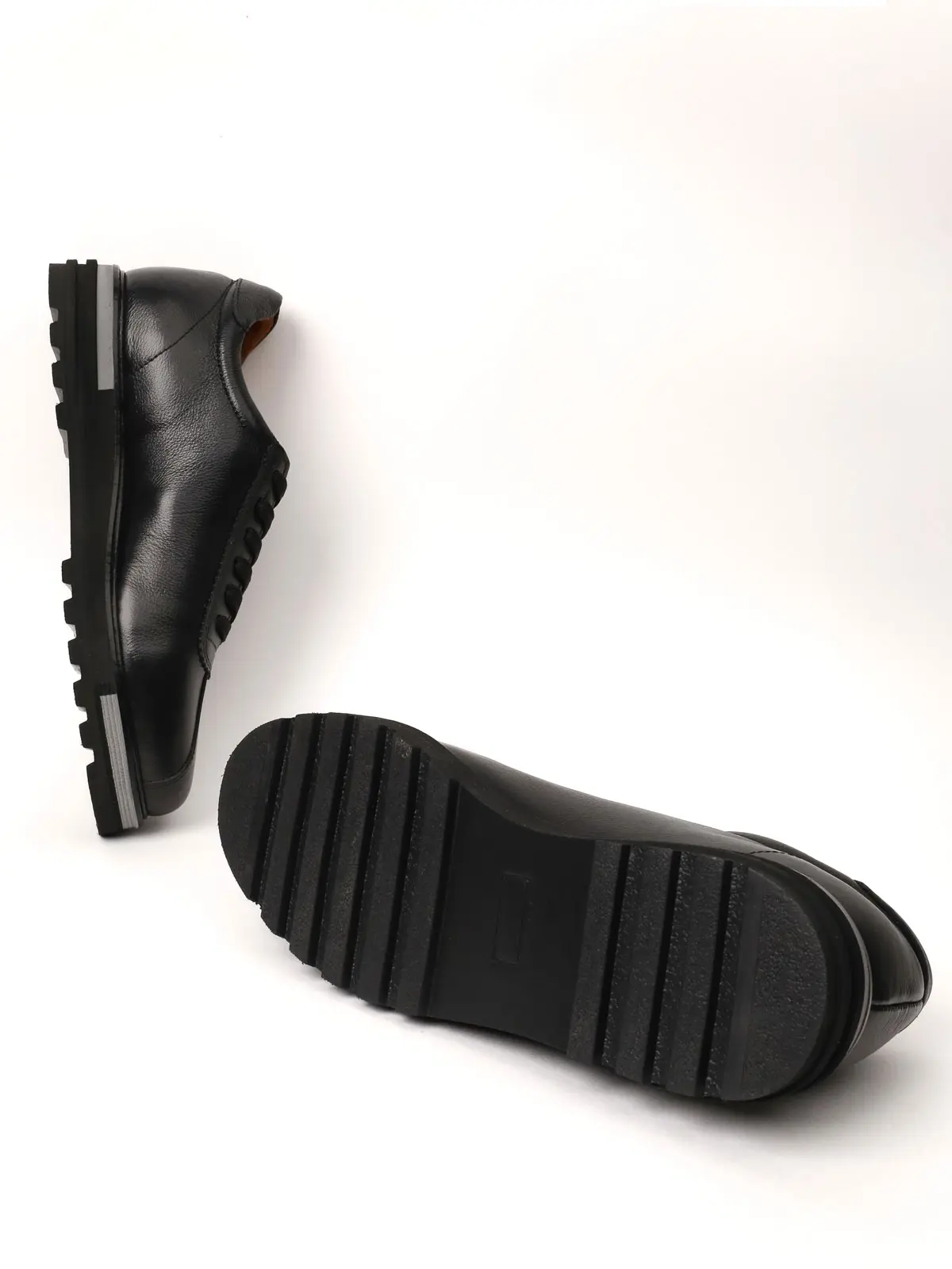 %100 Həqiqi Dəri Material: Ayaqqabının həm daxili, həm də xarici səthində birinci sinif %100 həqiqi dəridən istifadə edilmişdir. Dərinin təbii nəfəs alan quruluşu, ayağınızın gün boyu quru və sağlam qalmasına kömək edərkən, eyni zamanda uzunömürlü və davamlı istifadəni təmin edir.