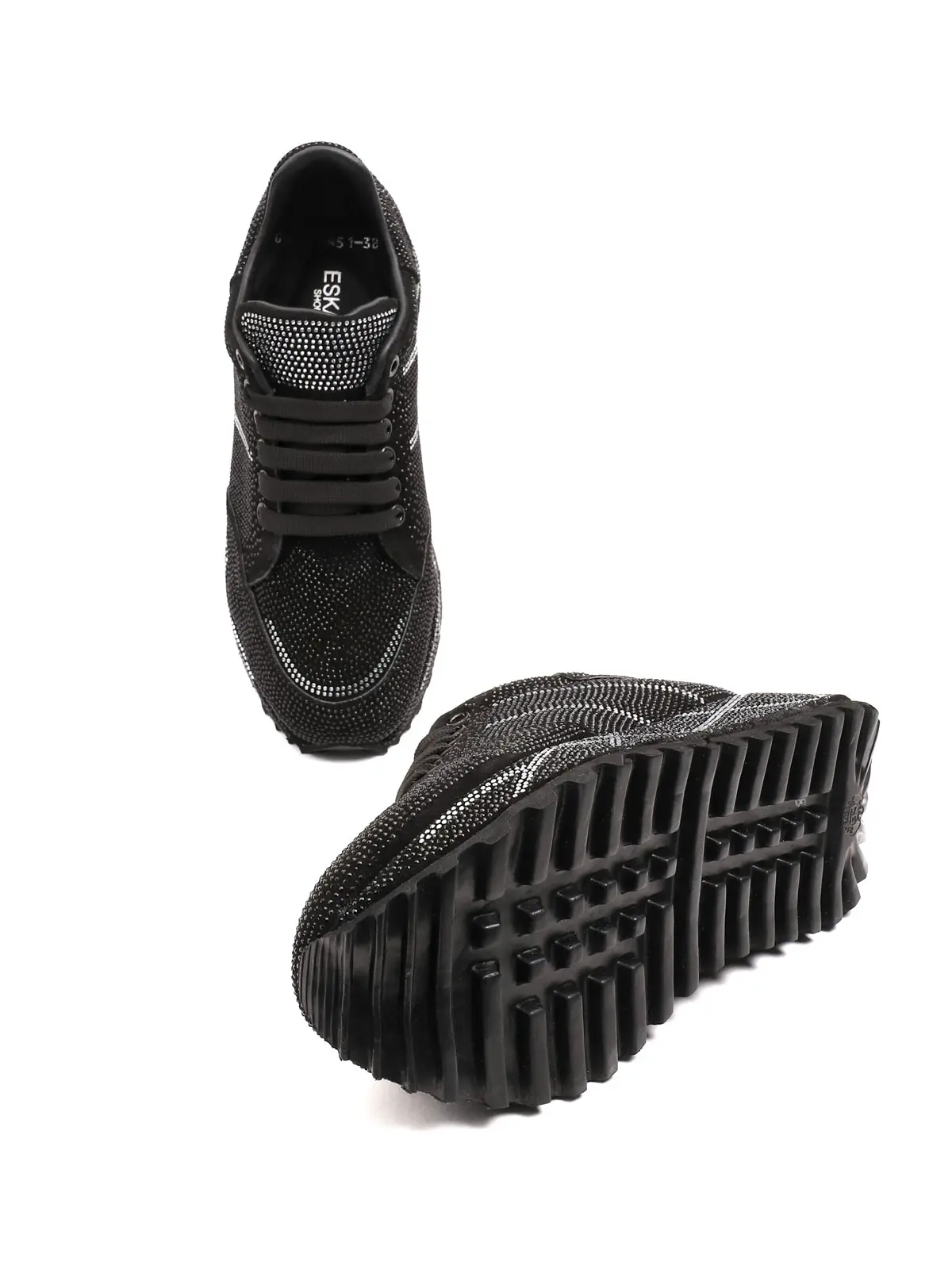 Modelin ən diqqət çəkən xüsusiyyəti, onun bütün səthini örtən minlərlə parlaq kristal qaşdır. Bu qaşlar işığın hər bucağında bərq vuraraq sizə valehedici bir parıltı bəxş edir və bütün diqqətləri üzərinizə çəkir. Yan tərəflərdəki həndəsi naxışlar dizayna dinamik və müasir bir hava qatır.