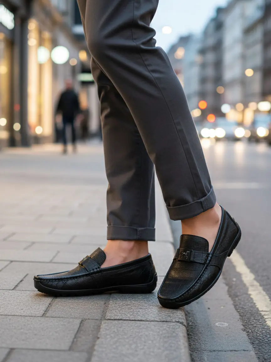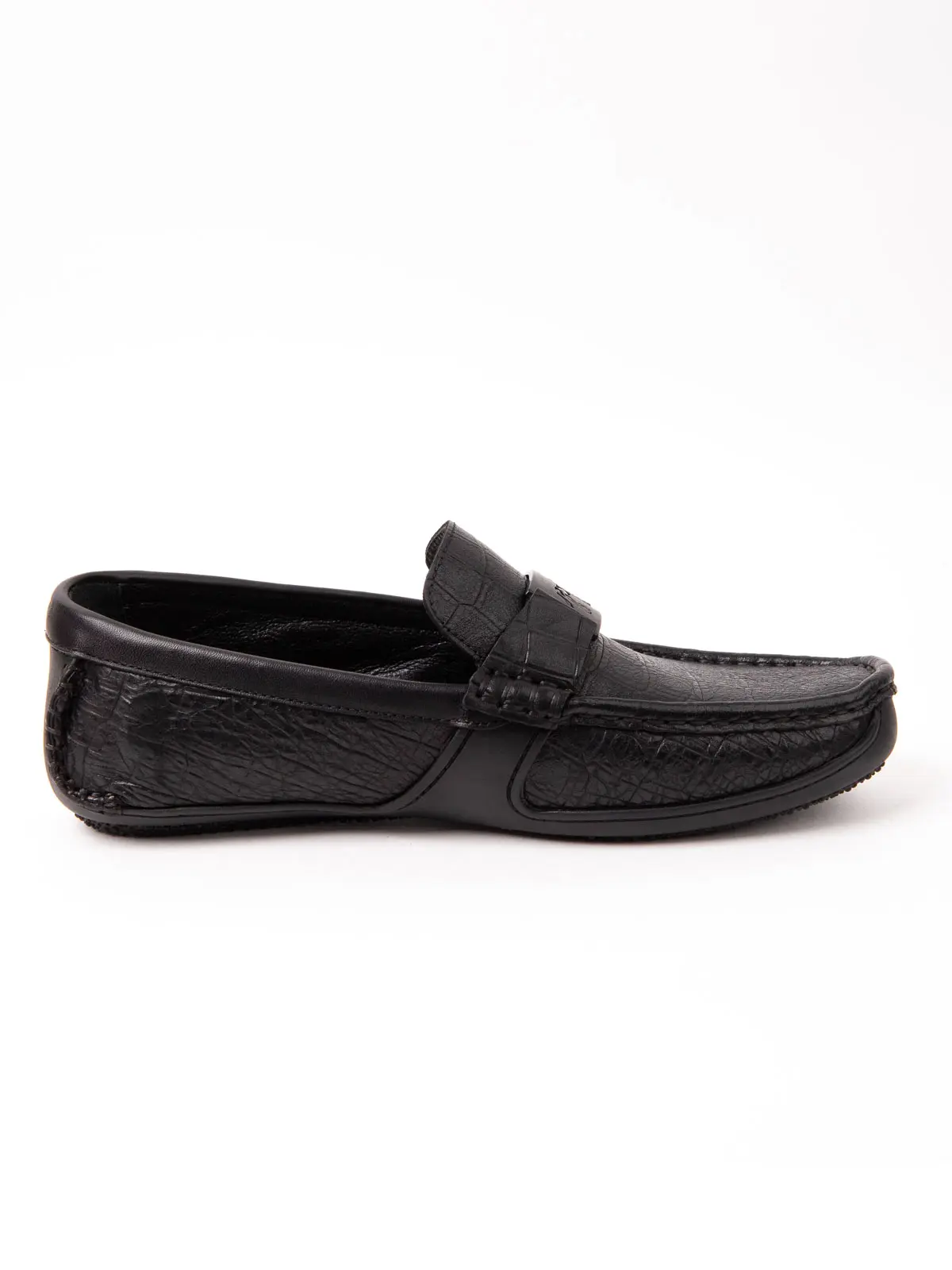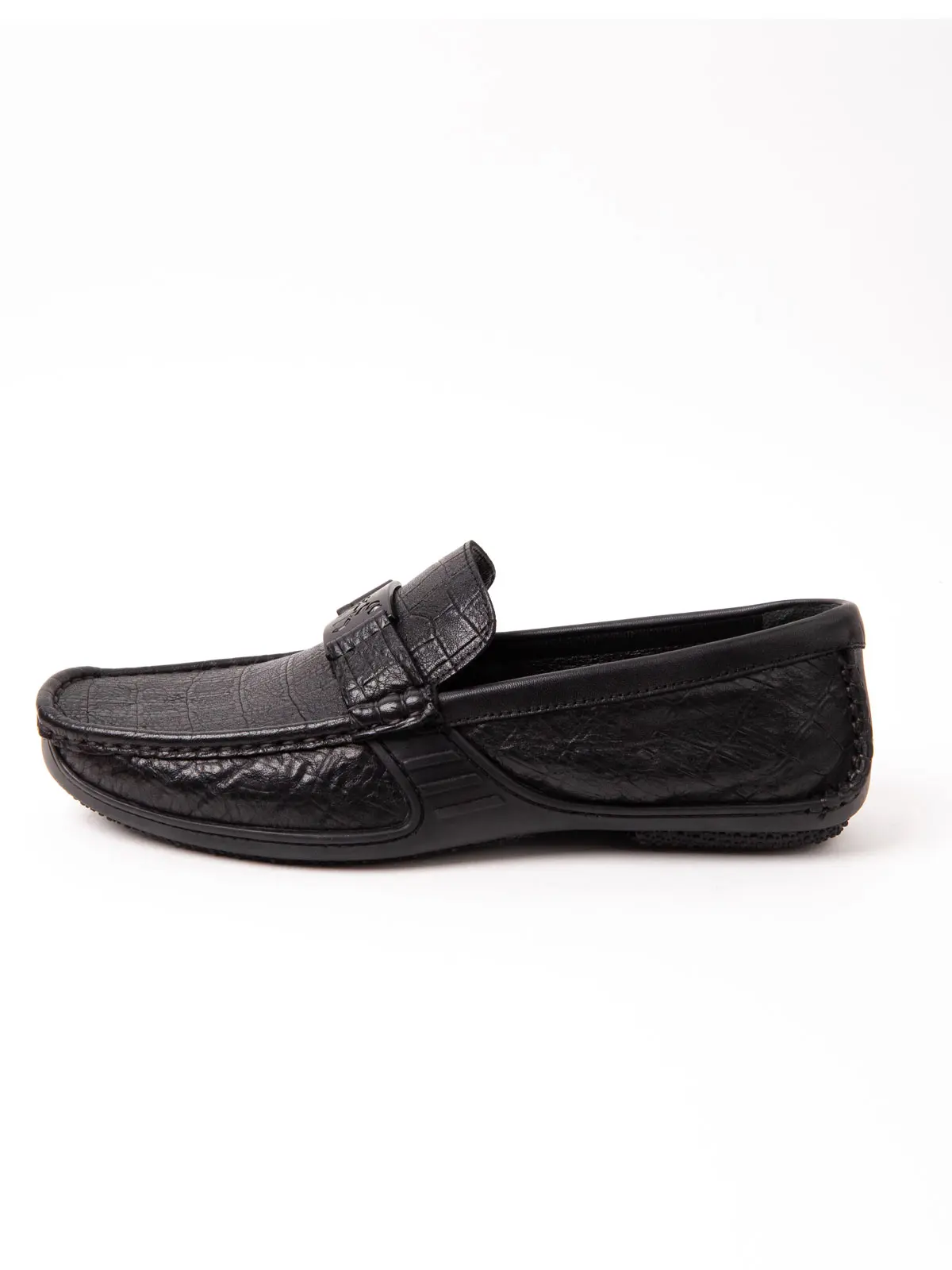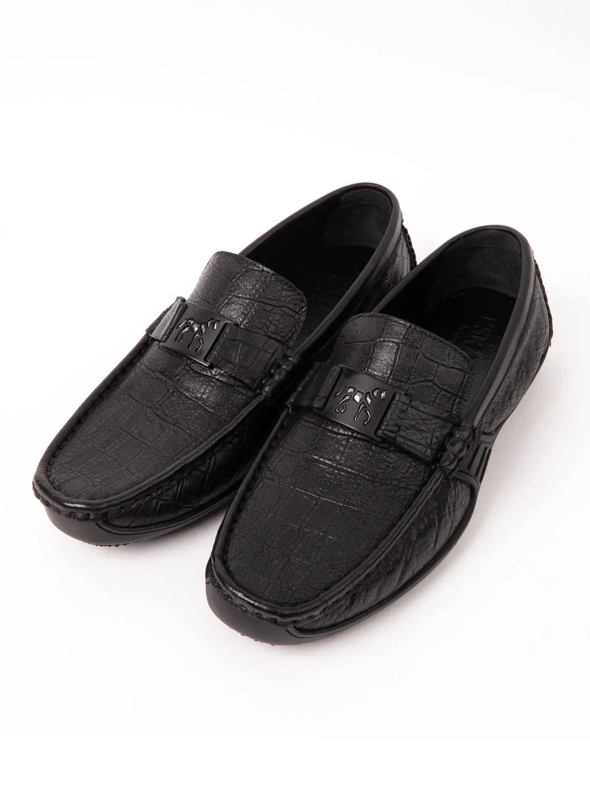 Qara Timsah Naxışlı Metal Loqolu Kişi Loferi