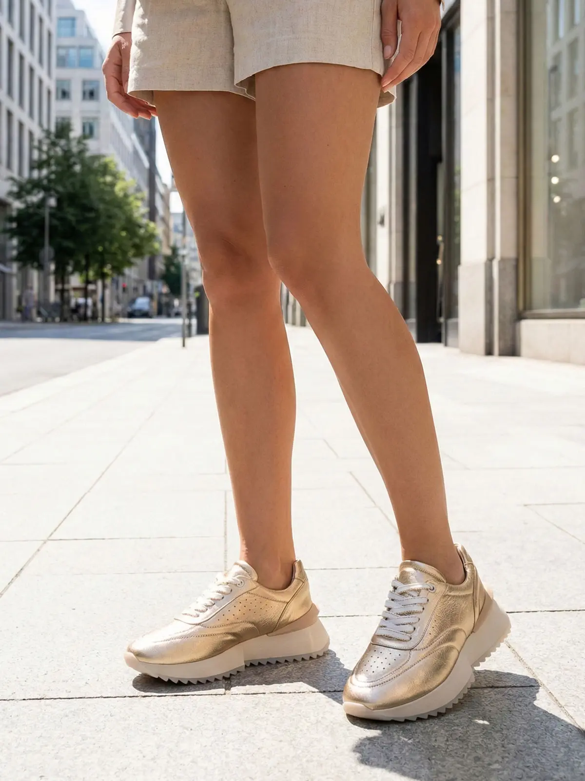 Gold Premium Doğal Deri Platform Kadın Sneaker – Günlük Şıklık