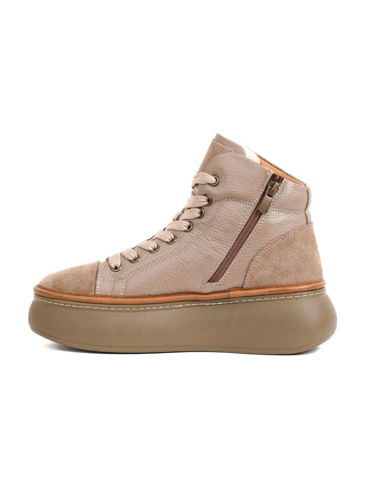 Eskarpini Vizon Renkli Hakiki Deri ve Nubuk Kombinasyonlu Kalın Tabanlı Kadın Botu