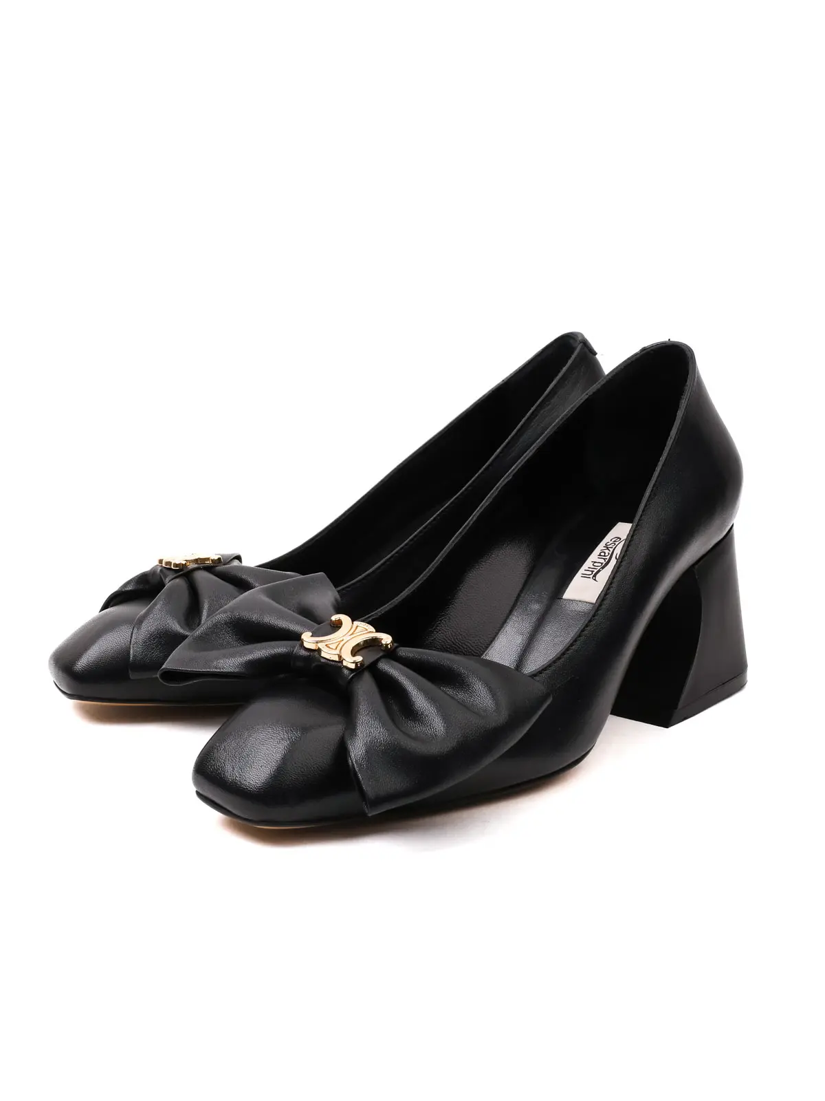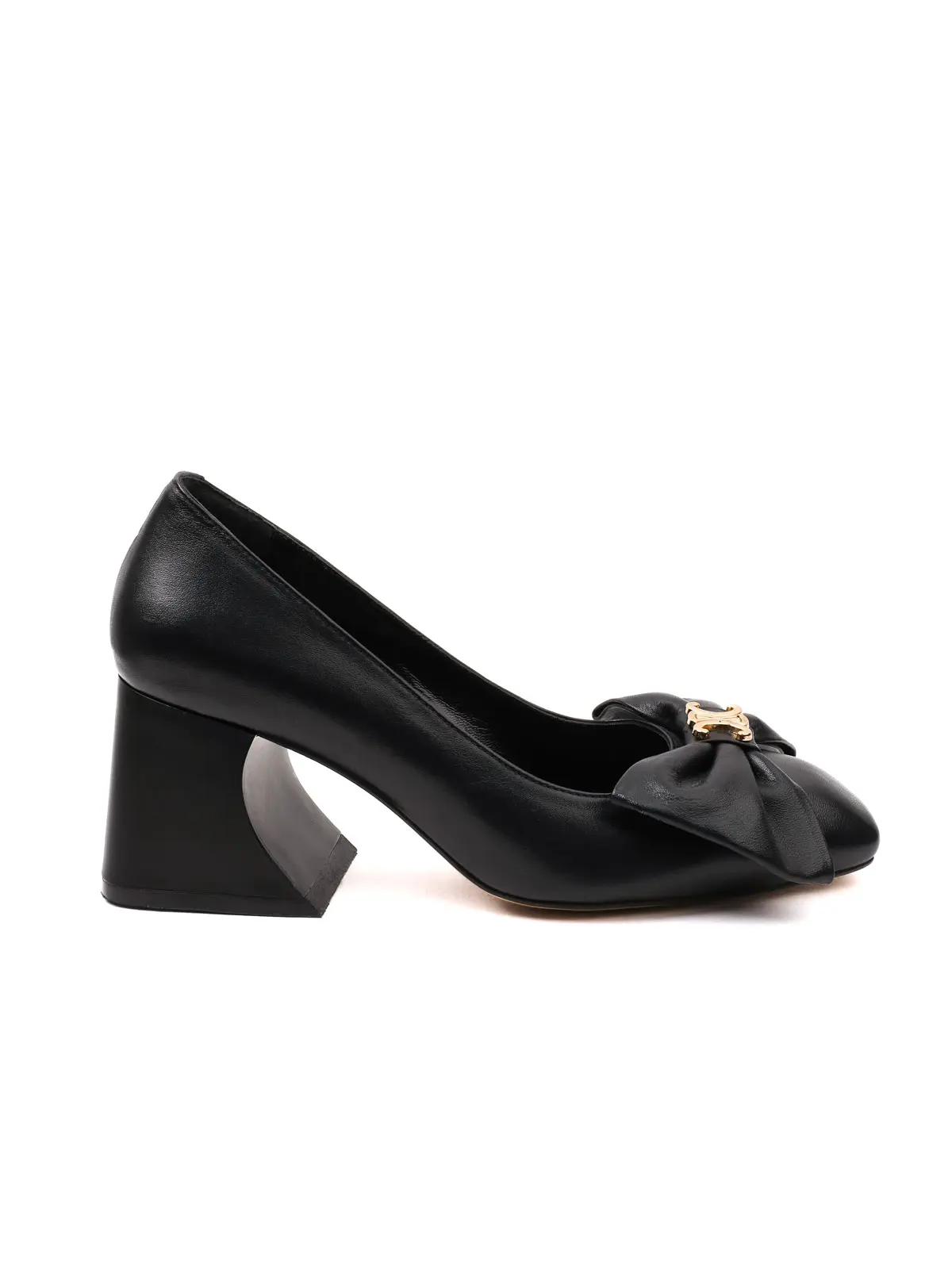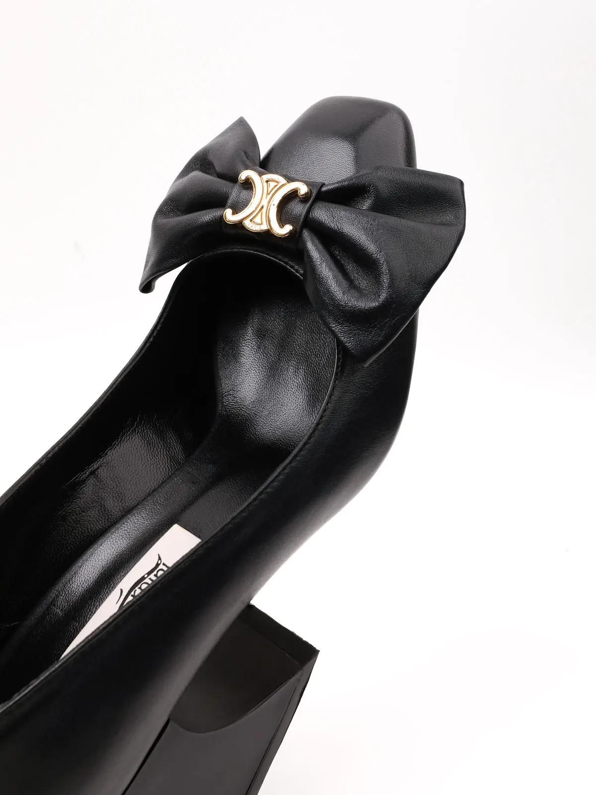 Modelin ön kısmında yer alan zarif bant detayı ve üzerindeki parlak altın rengi metal aksesuar, ayakkabıya modern ve lüks bir hava katar. Kare burun yapısı parmaklarınızın sıkışmasını önleyerek konforlu bir kullanım sağlar. 6 cm yüksekliğindeki kalın (blok) topuk tasarımı ise yürüyüşünüzü sabitleyerek hem ofis şıklığında, hem de özel davetlerde yorulmadan kullanmanıza imkan tanır.