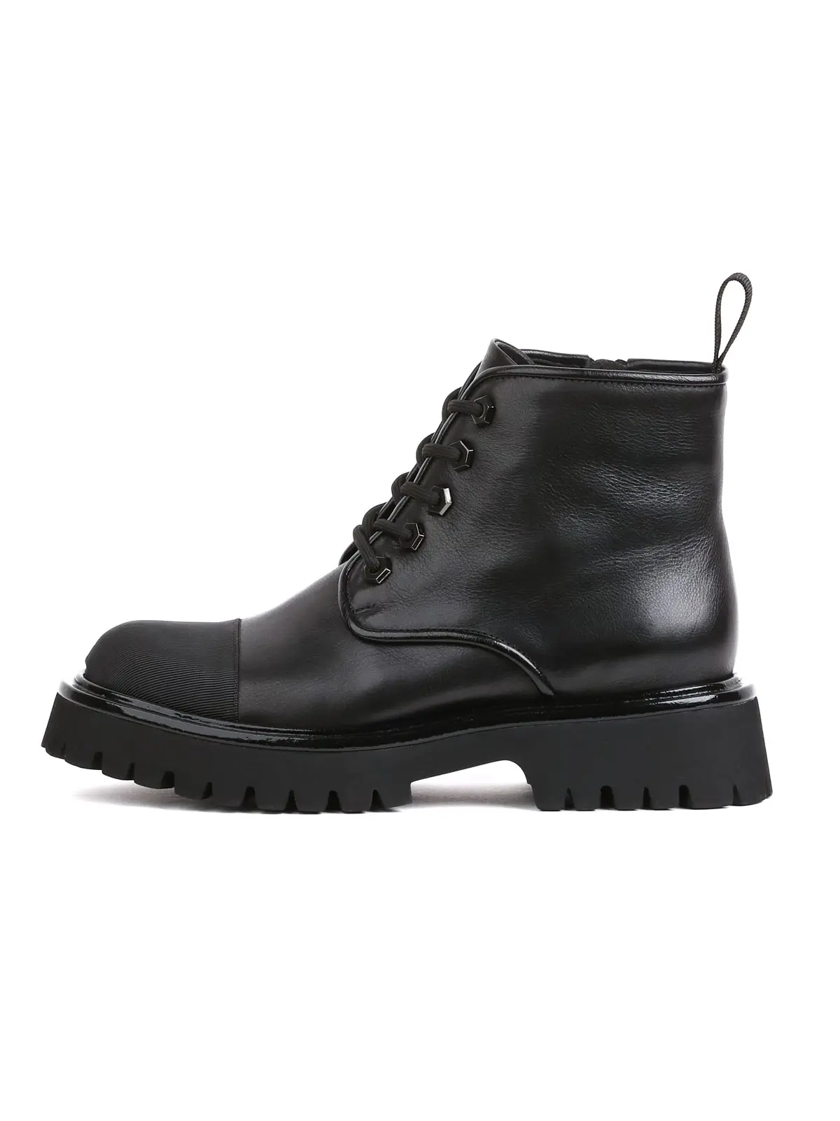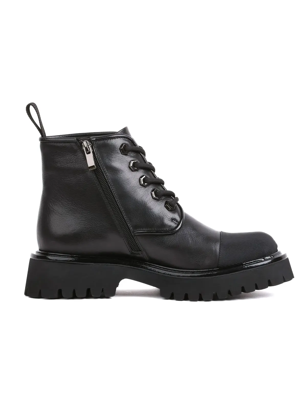 Eskarpini Doğal Deri Siyah Bağcıklı Kadın Botu – Koruyucu Burunlu ve Kalın Tabanlı Trend Model