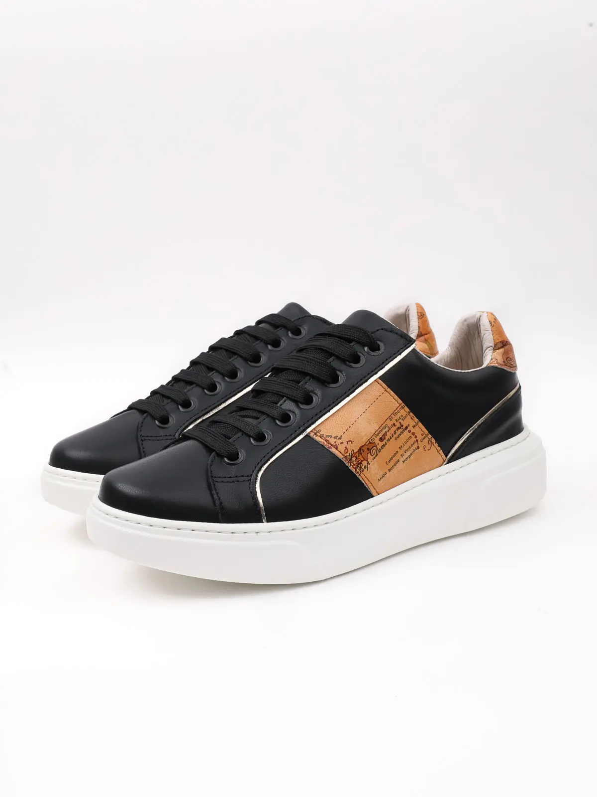 Harita Desenli Hakiki Deri Kadın Spor Ayakkabı (Sneaker)